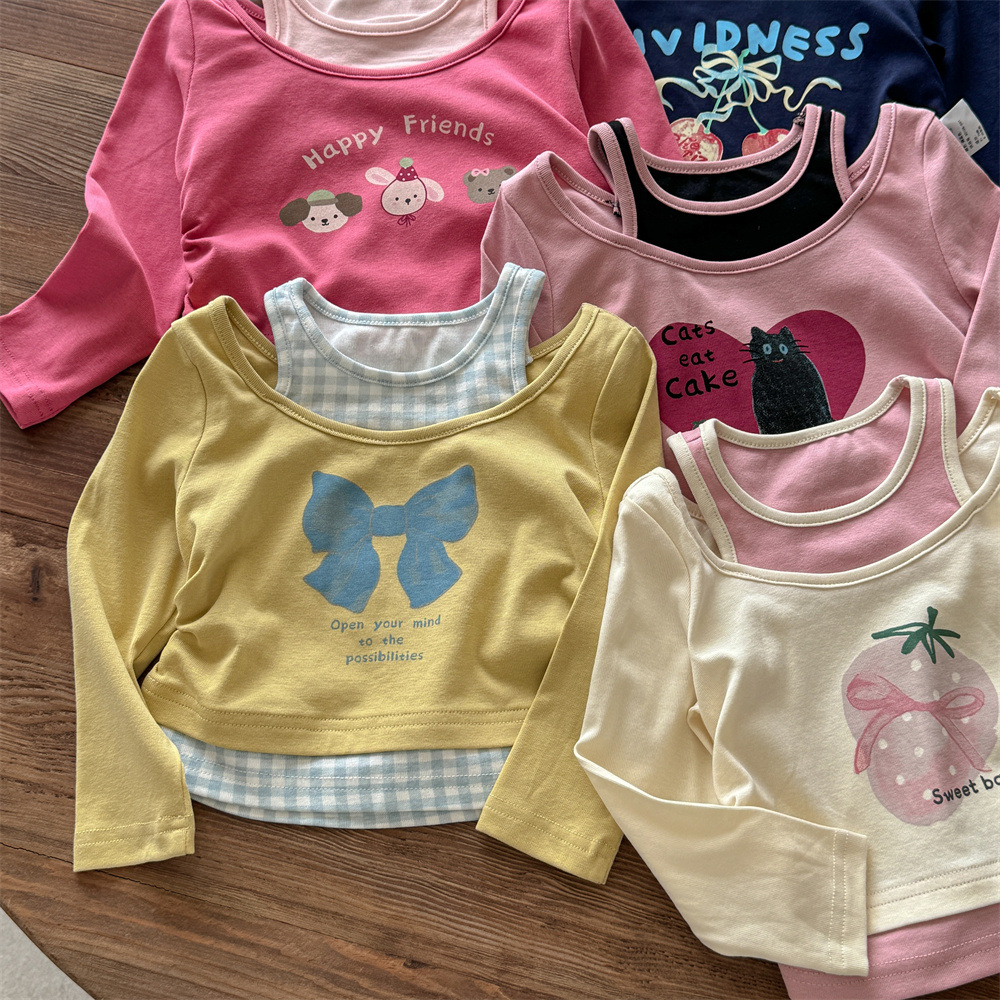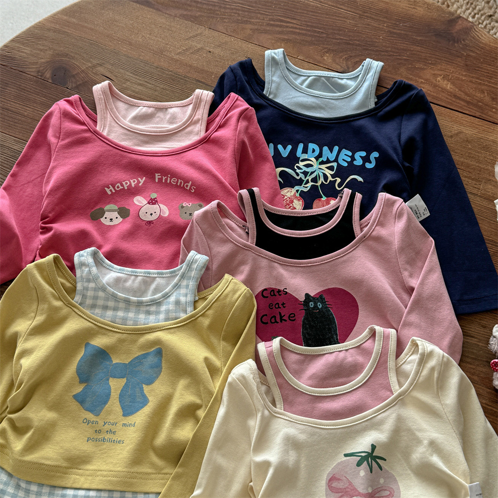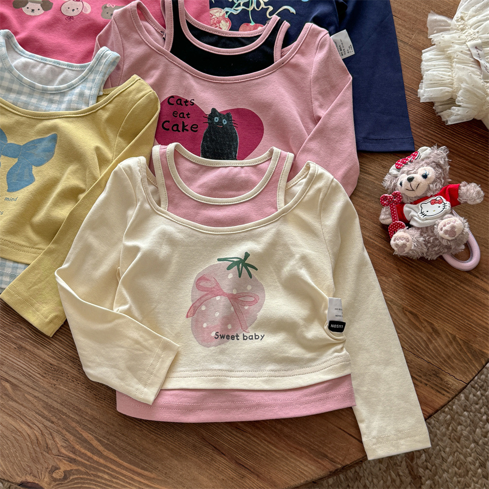 스위트 리틀 걸즈 봄/가을 신상 투피스룩 티셔츠 25 신상 만화 동물 프린트 귀여운 상의스토어 가기