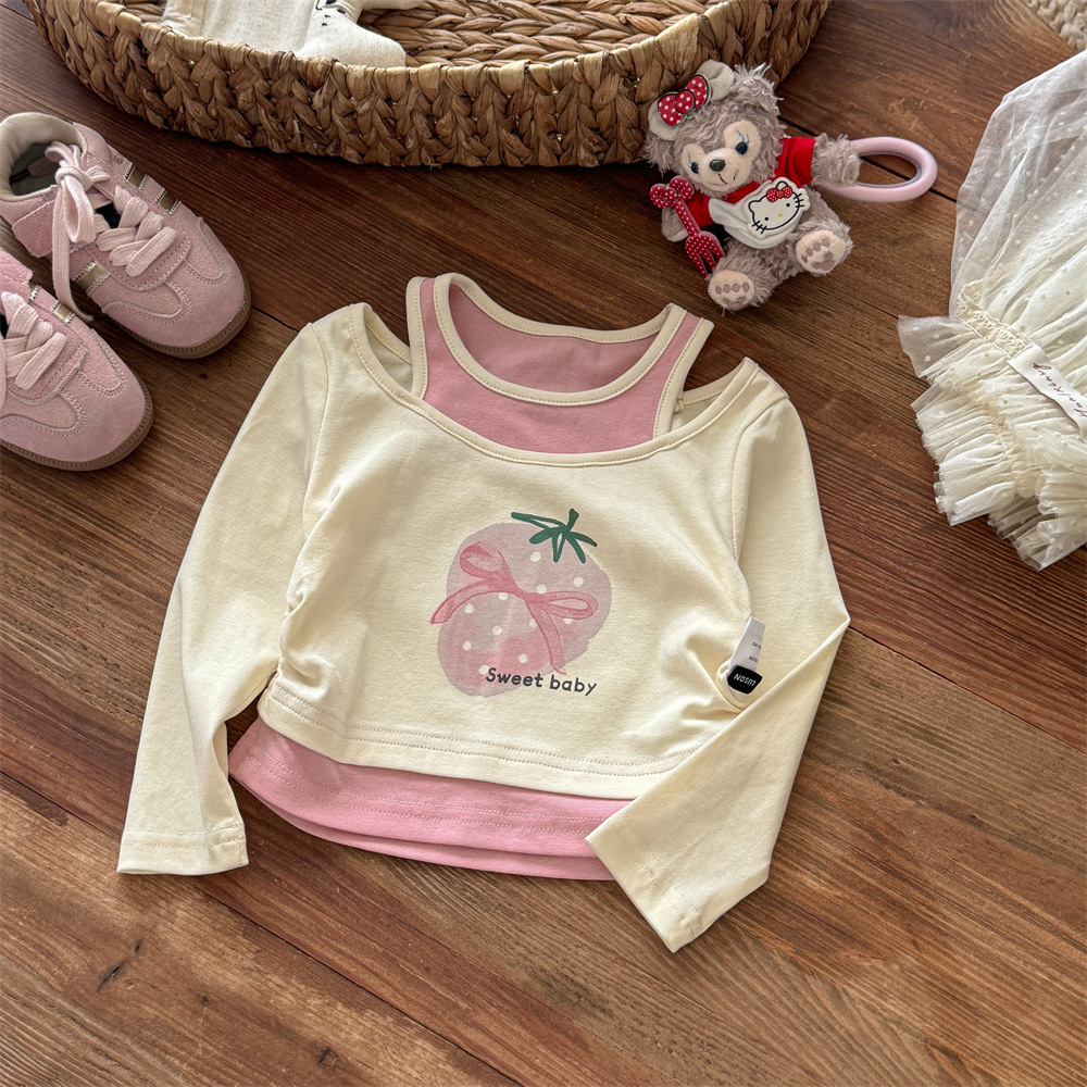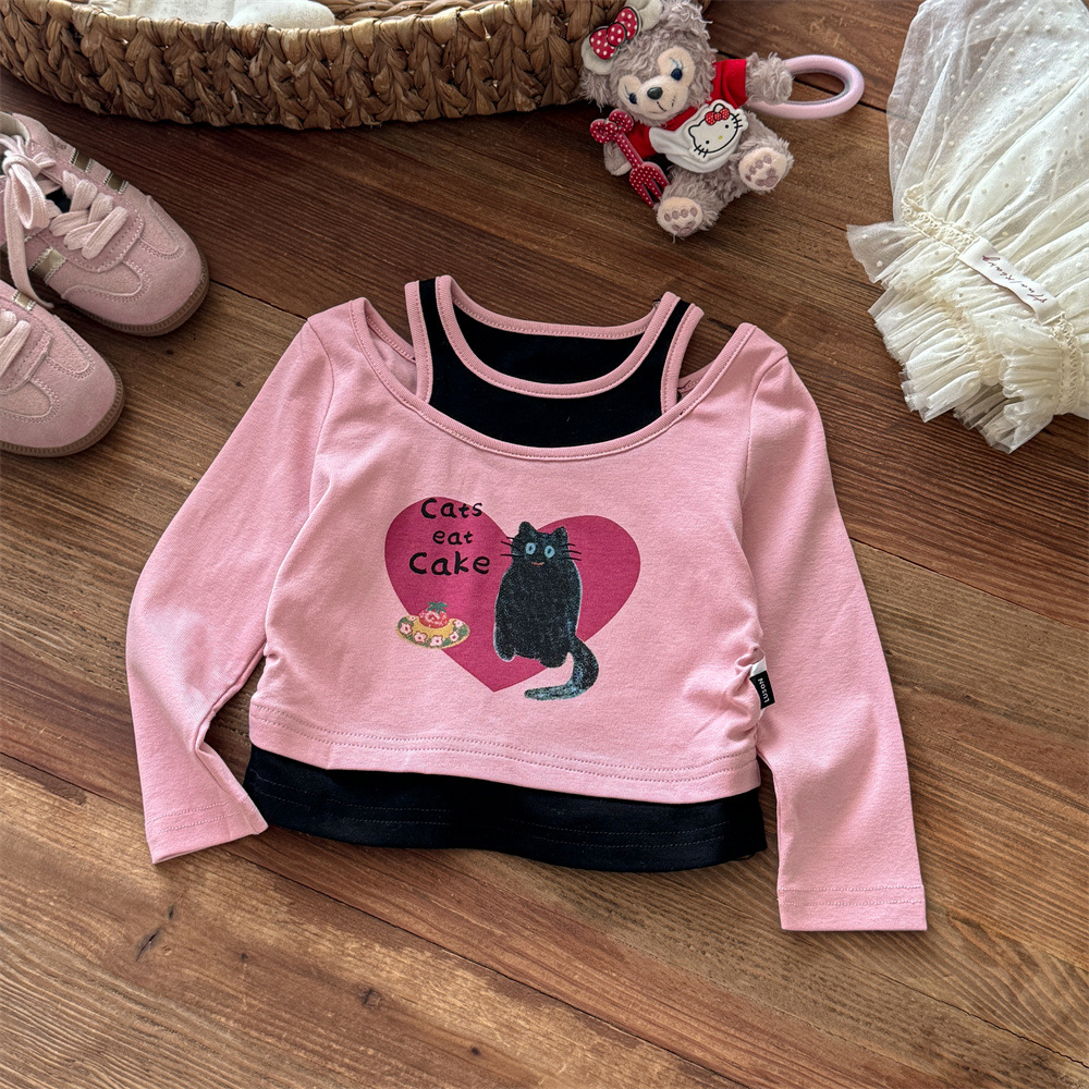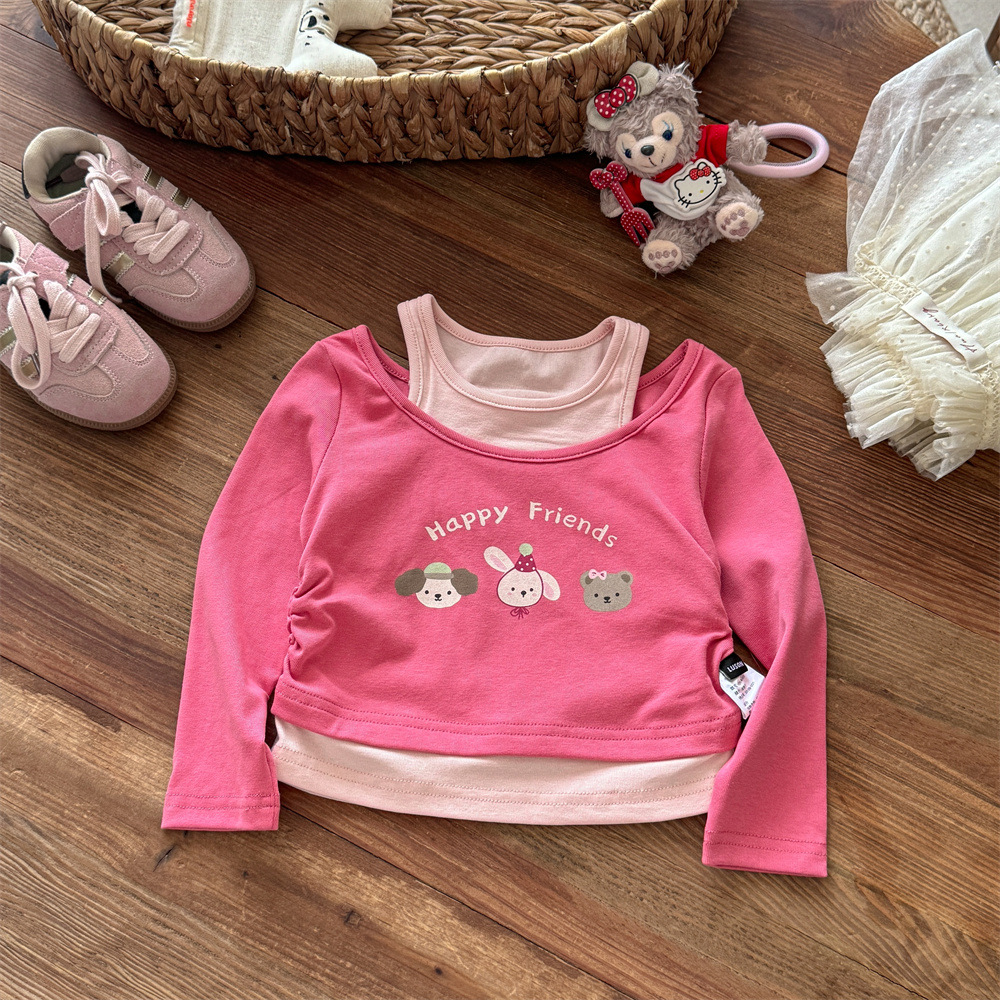 스위트 리틀 걸즈 봄/가을 신상 투피스룩 티셔츠 25 신상 만화 동물 프린트 귀여운 상의