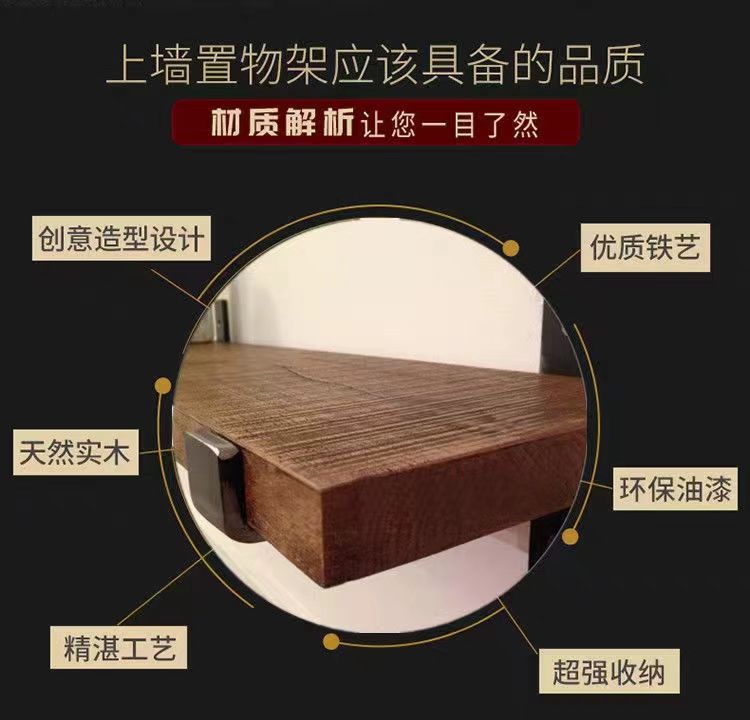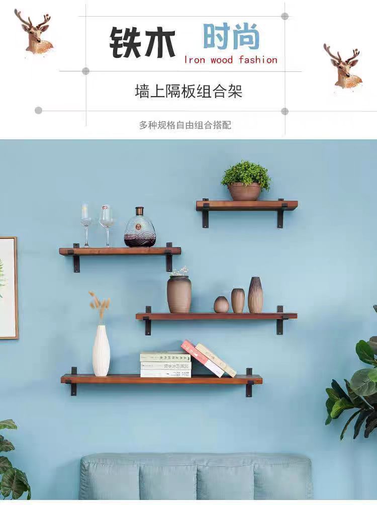 책장 단단한 나무 벽 수납 선반 일자형 벽 철제 벽걸이 수납 선반 중국식 수납