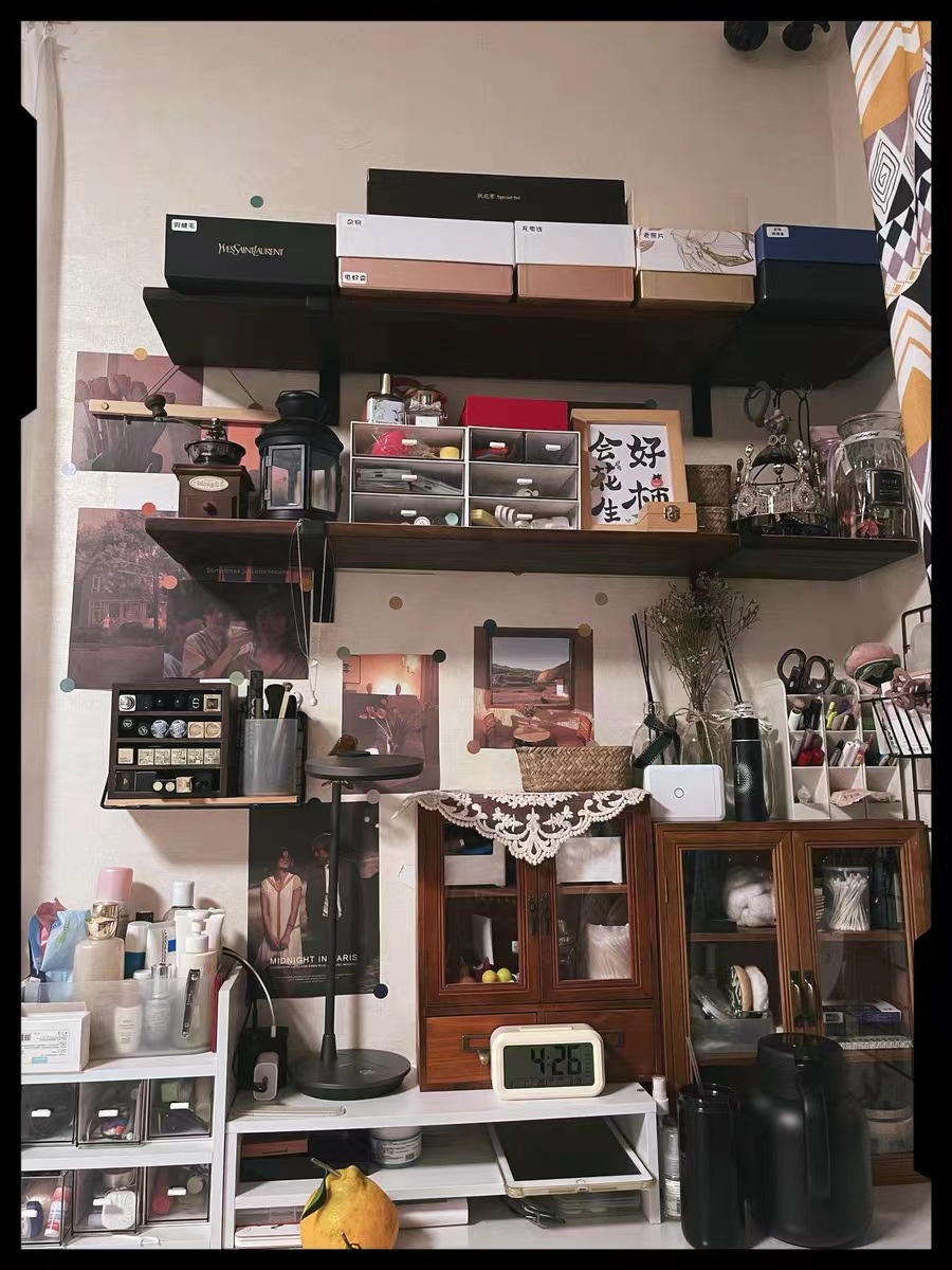 책장 단단한 나무 벽 수납 선반 일자형 벽 철제 벽걸이 수납 선반 중국식 수납스토어 가기