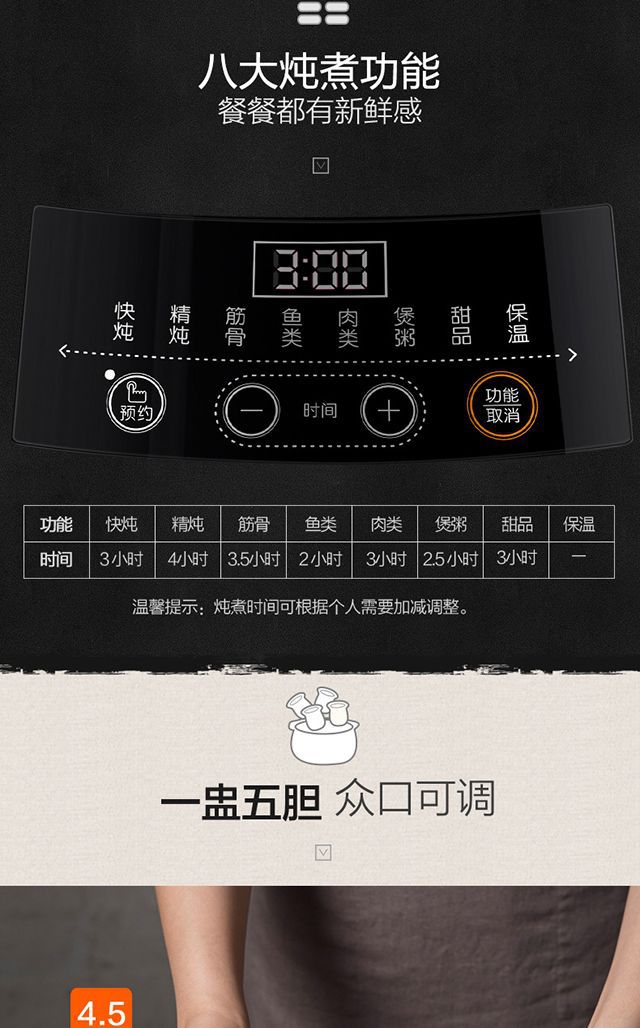 전기 스튜 냄비 보라색 냄비 방수 스튜 가정용 1 냄비 5 간 스튜 전기 냄비 새로운 다기능