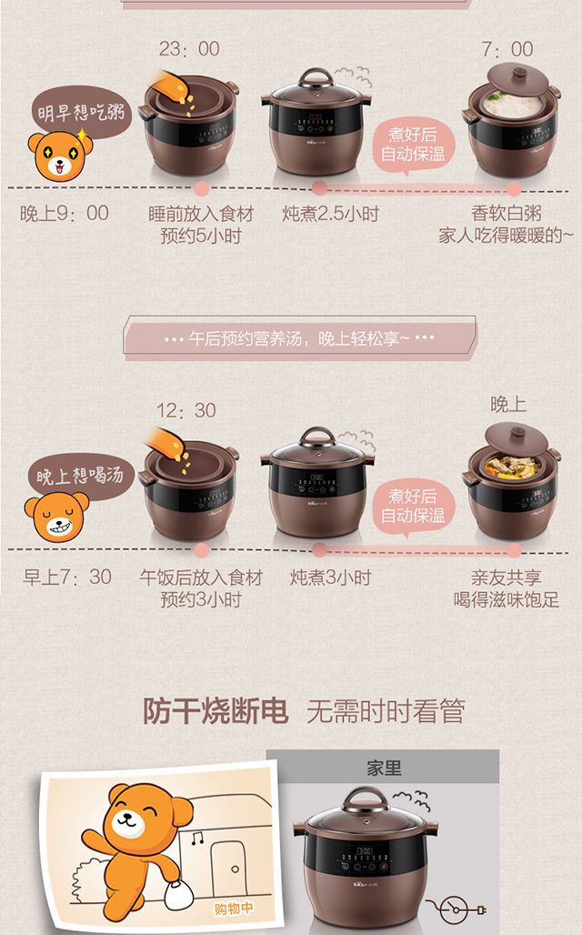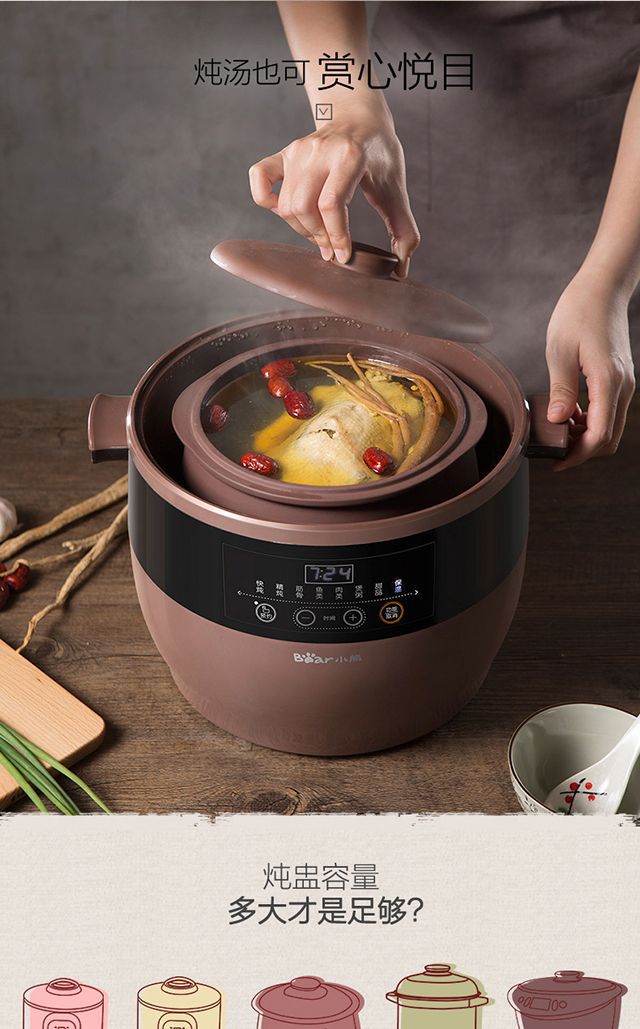 전기 스튜 냄비 보라색 냄비 방수 스튜 가정용 1 냄비 5 간 스튜 전기 냄비 새로운 다기능스토어 가기