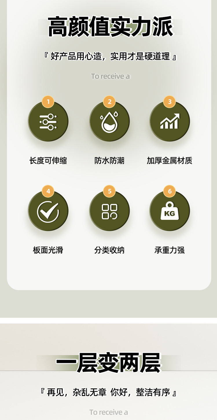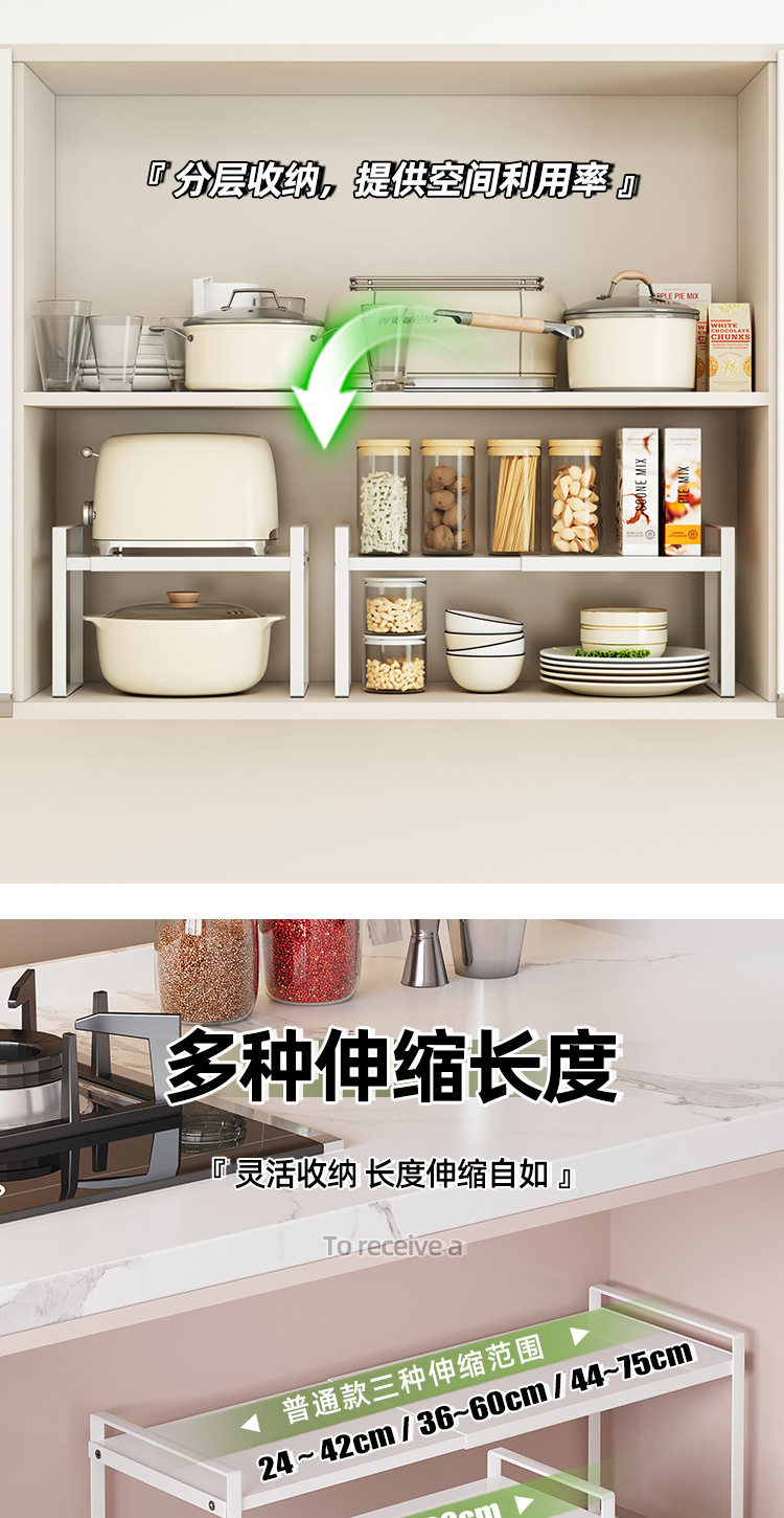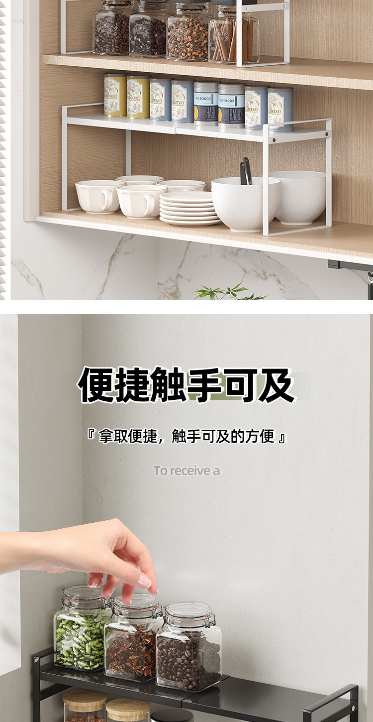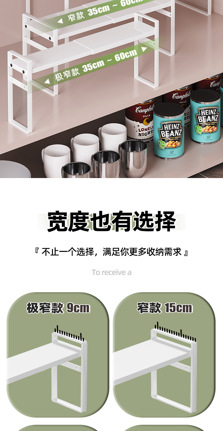 厨房置物架橱柜内隔板可伸缩窄款柜子内侧缝隙分层架调料各种神器