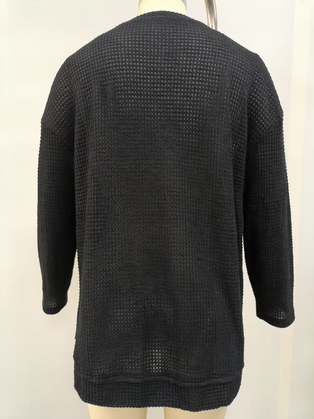 2025 유럽과 미국의 아마존 국경 간 기질 패션 솔리드 컬러 와플 루즈 라운드 넥 긴팔 슬릿 탑 여성 의류