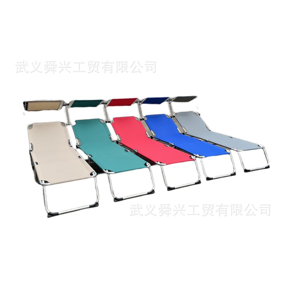 厂家定制铝合金户外折叠床沙滩躺椅带遮阳顶棚休闲三折床午休躺床
