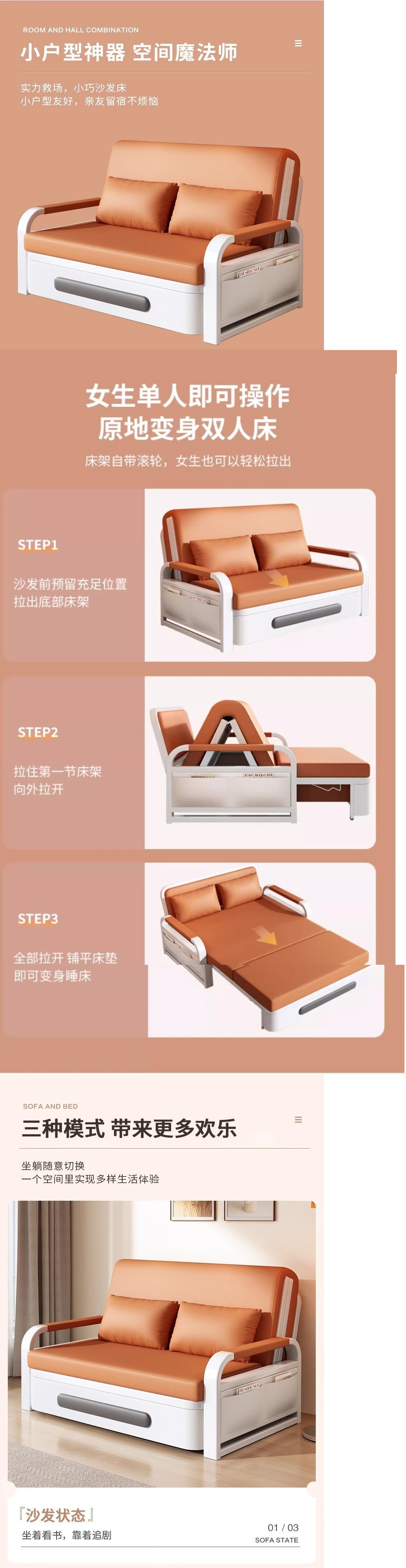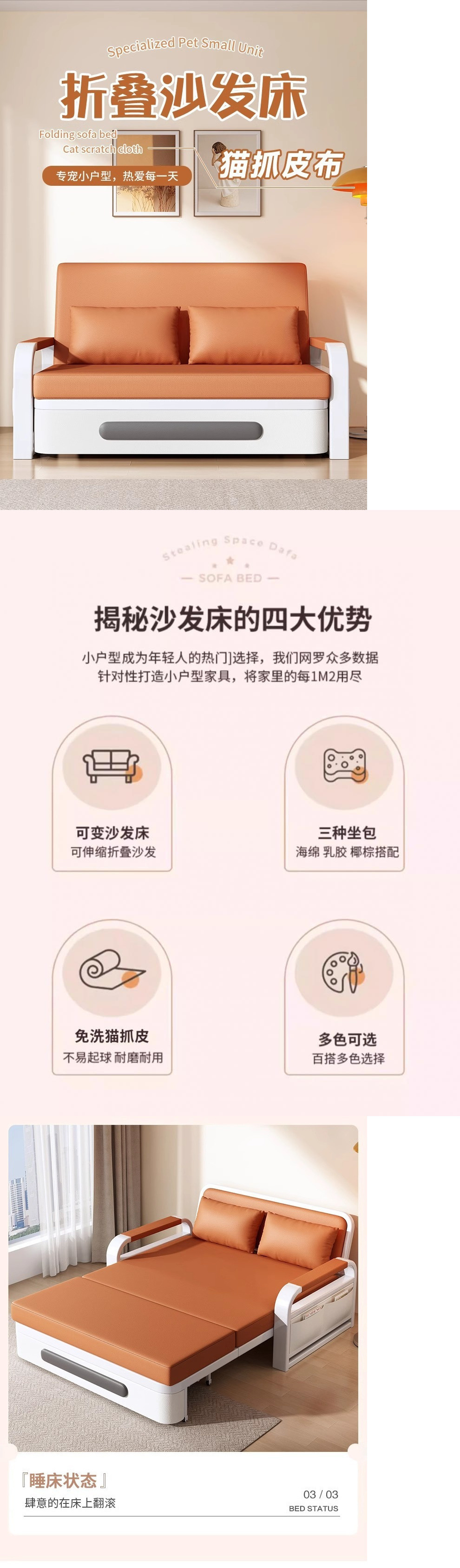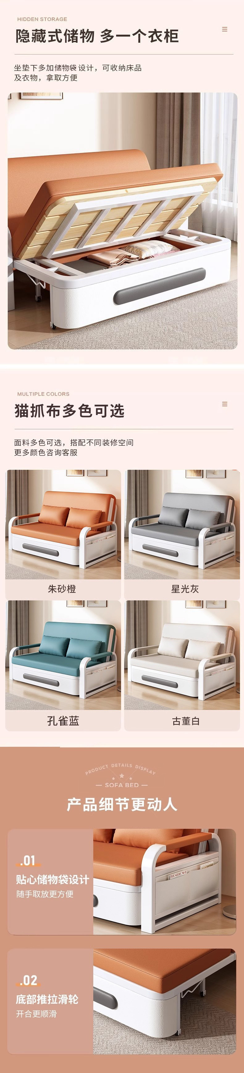 싱글 소파 베드 접이식 이중 용도 2023 새로운 거실 접이식 침대 작은 아파트 발코니 다기능 텔레스코픽 침대스토어 가기