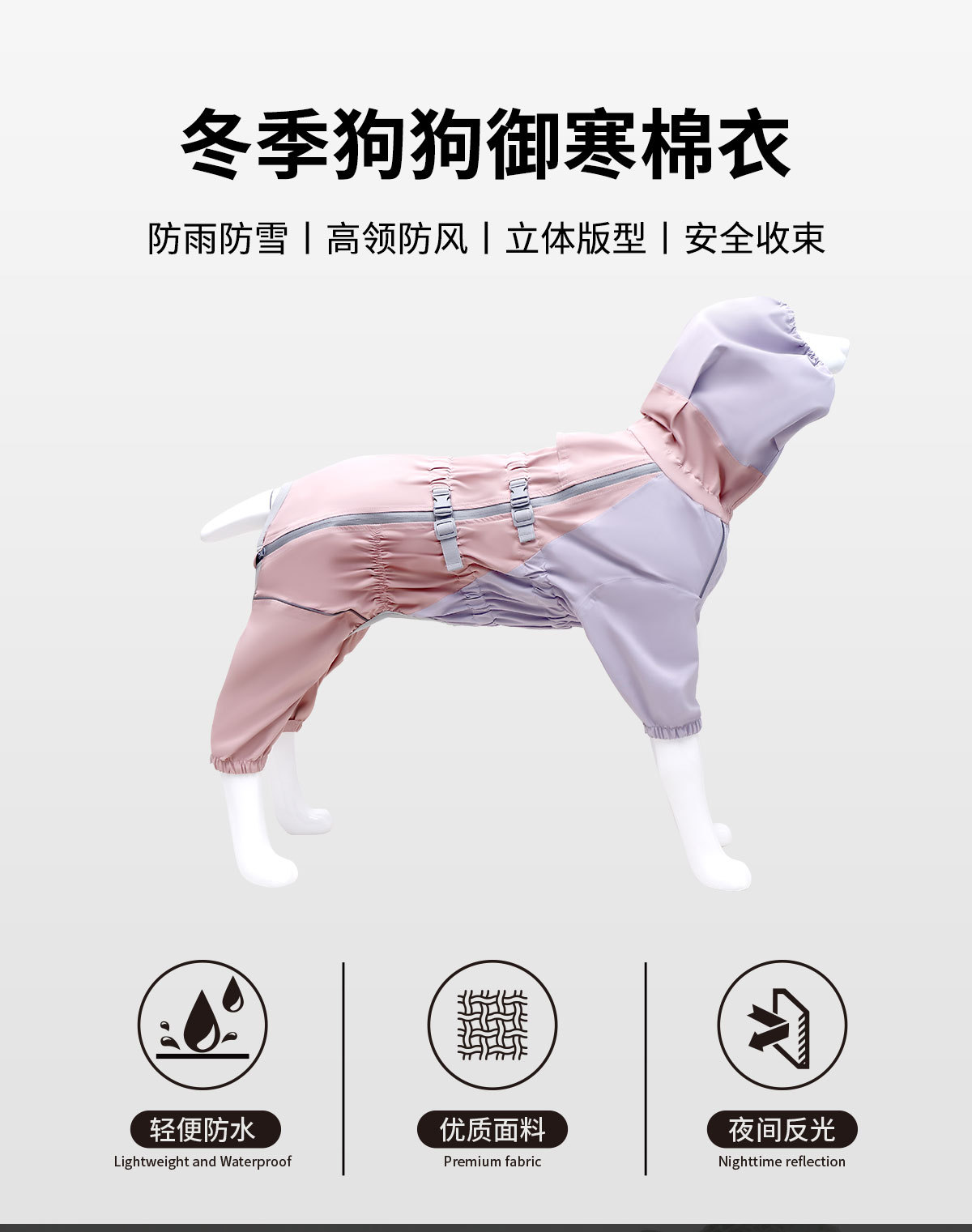 중대형견용 방수 방풍 자켓, 네발 전신 커버 애완동물 옷, 대형견용 우비 도매