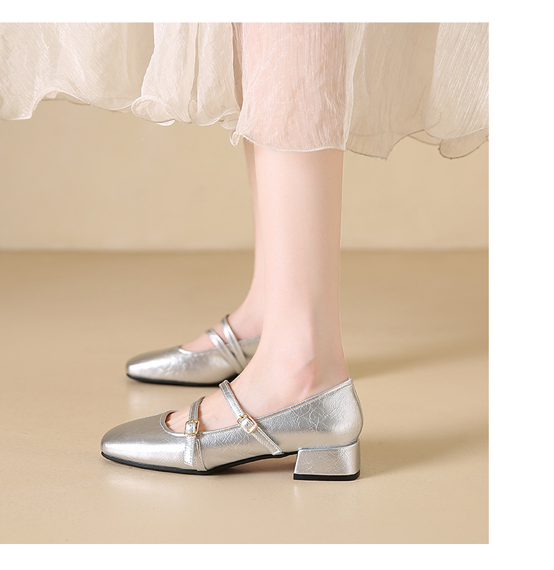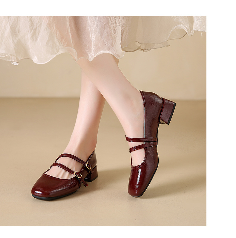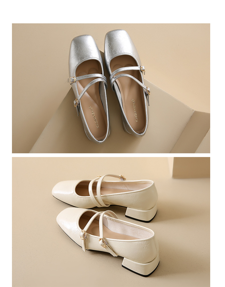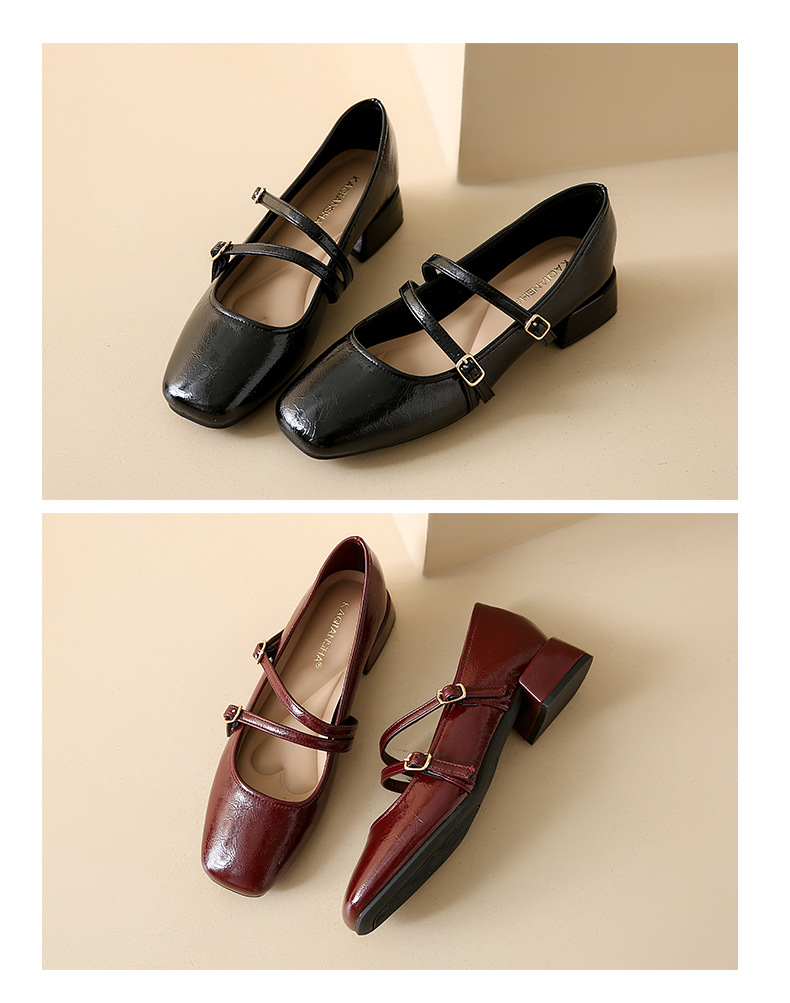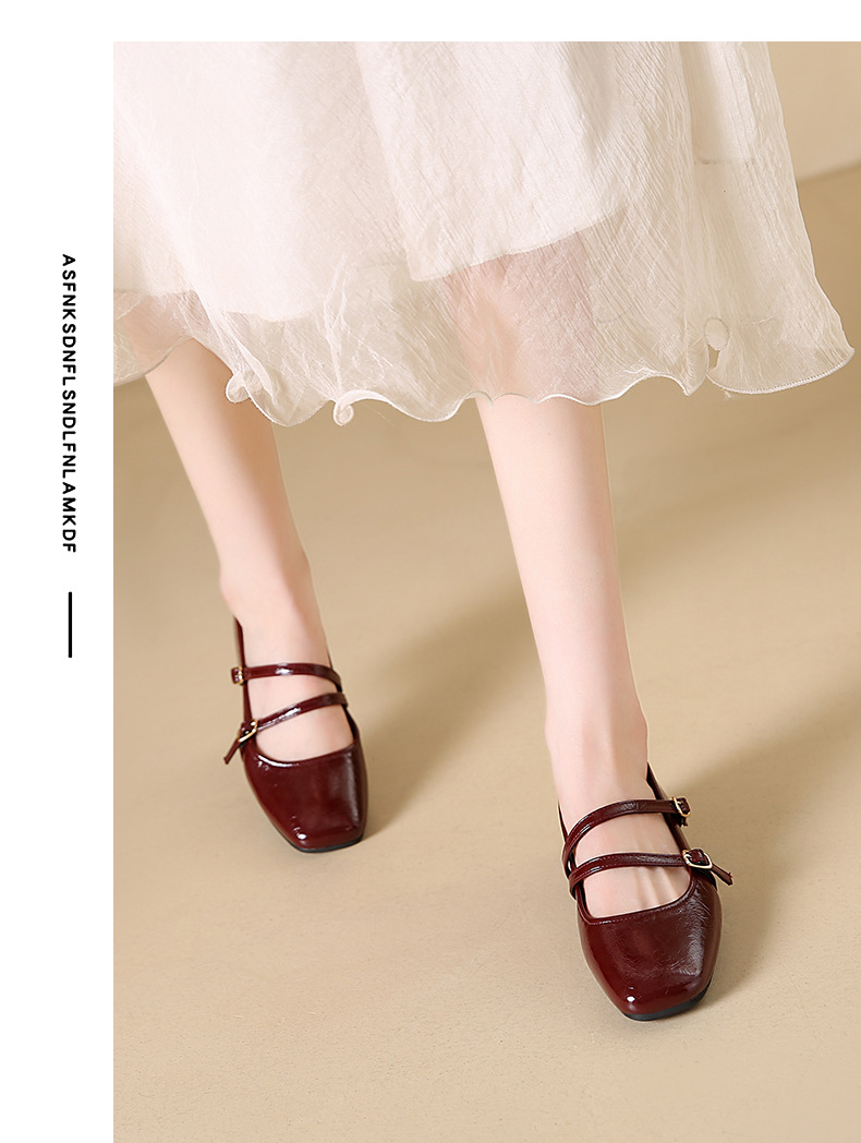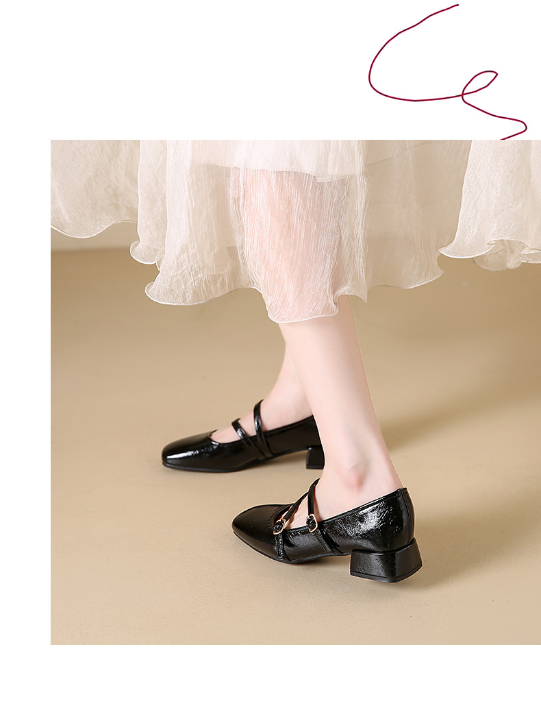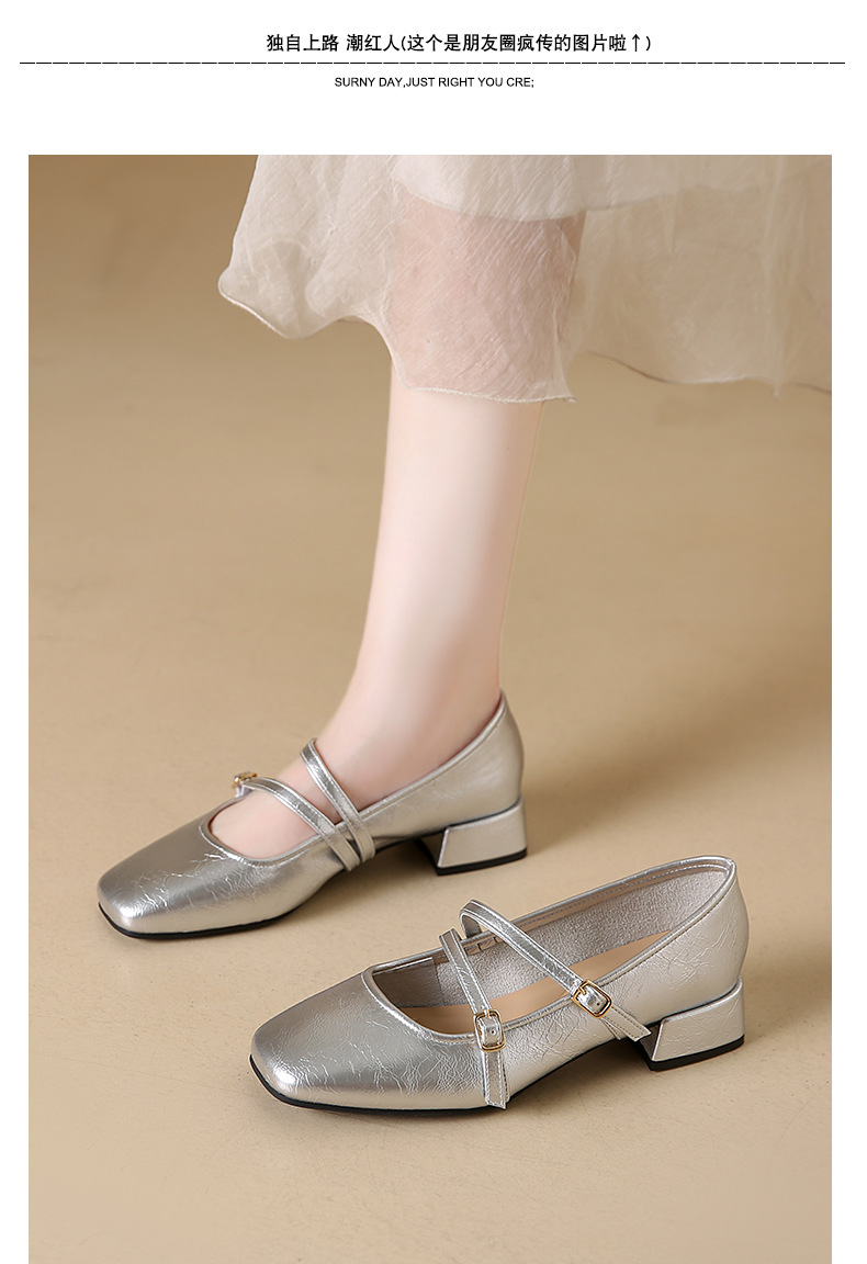 발레 스타일 메리 제인 여성 신발 2025 여름 새 스타일 스커트 스퀘어 발가락 두꺼운 굽 작은 가죽 신발 펌프 신발스토어 가기