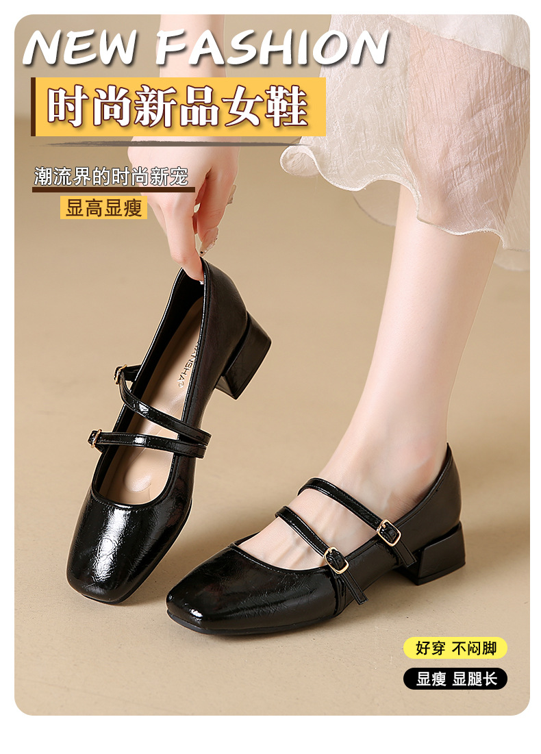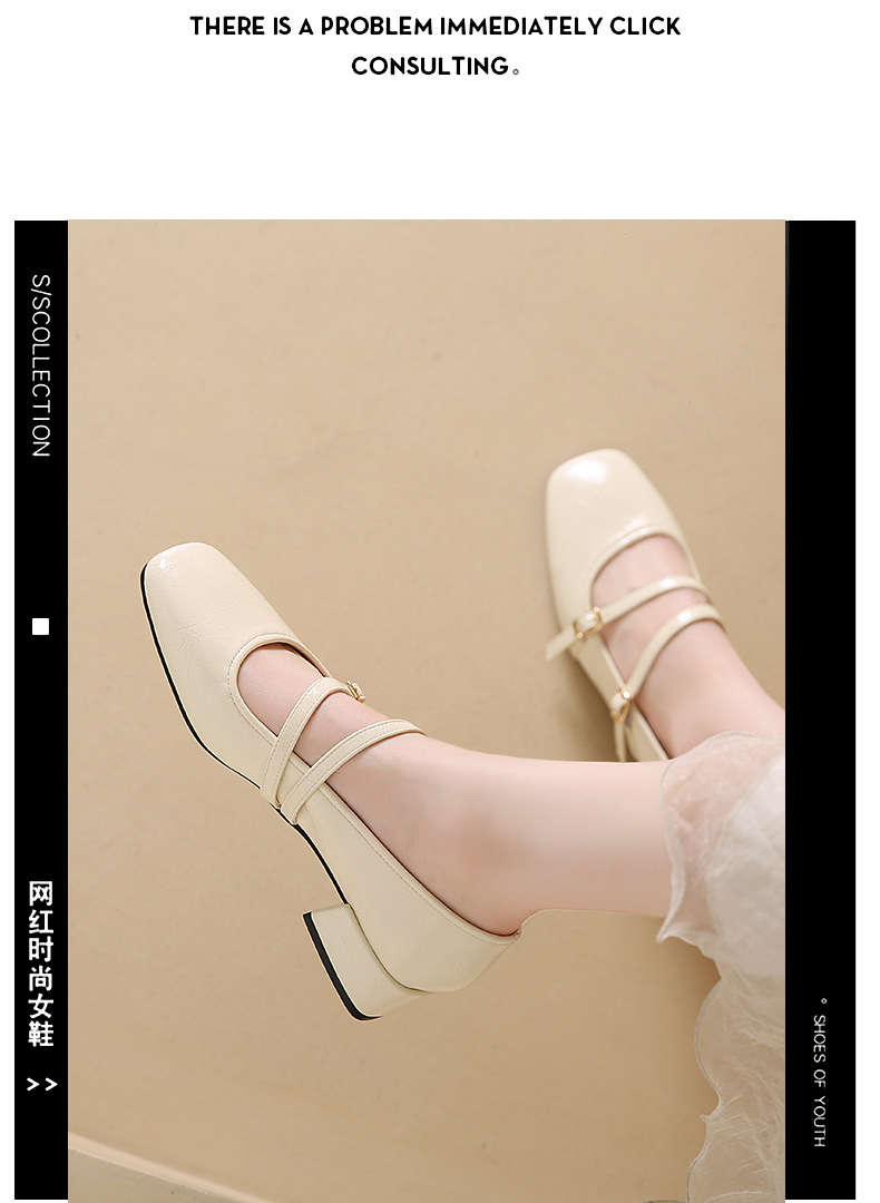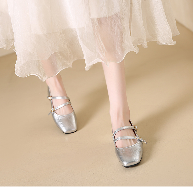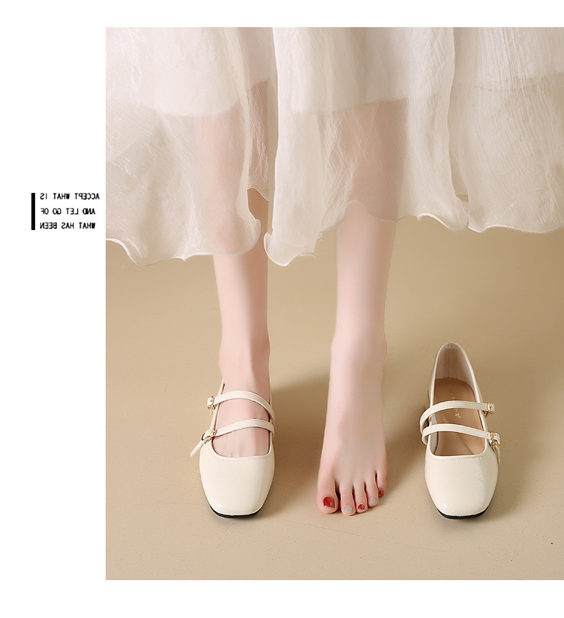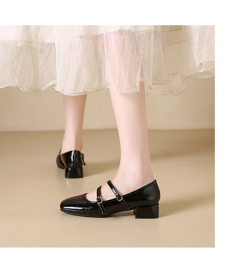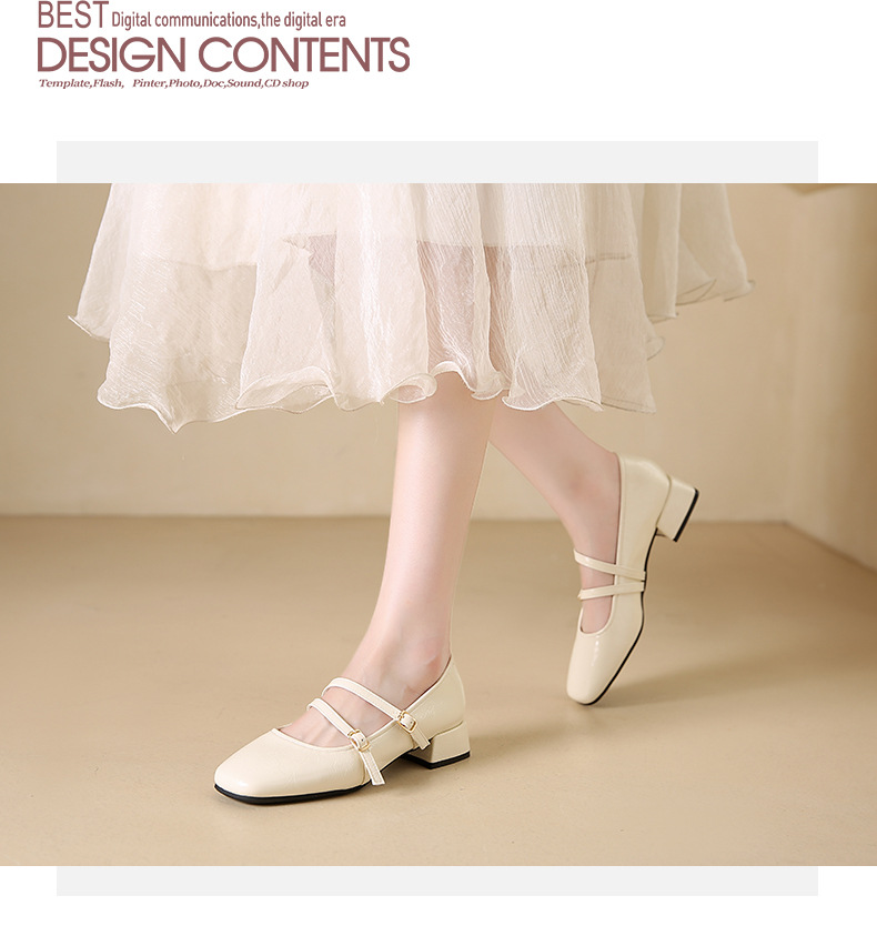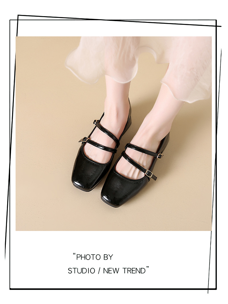 발레 스타일 메리 제인 여성 신발 2025 여름 새 스타일 스커트 스퀘어 발가락 두꺼운 굽 작은 가죽 신발 펌프 신발스토어 가기