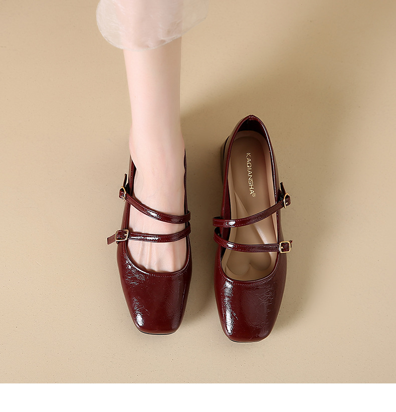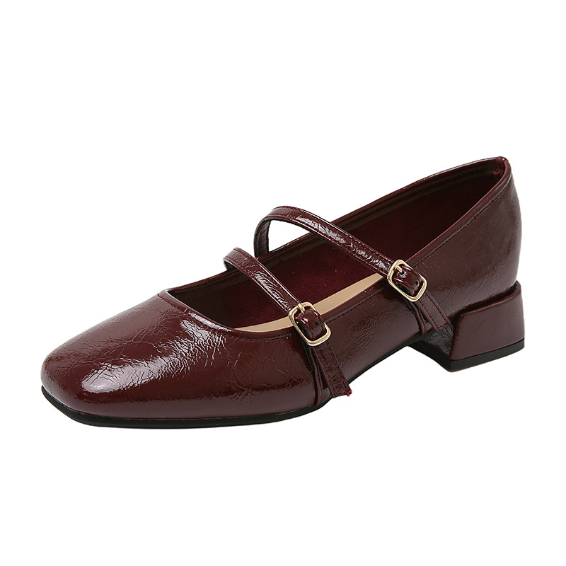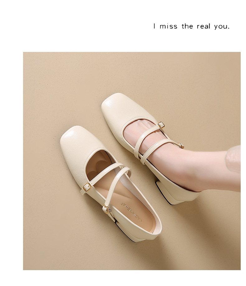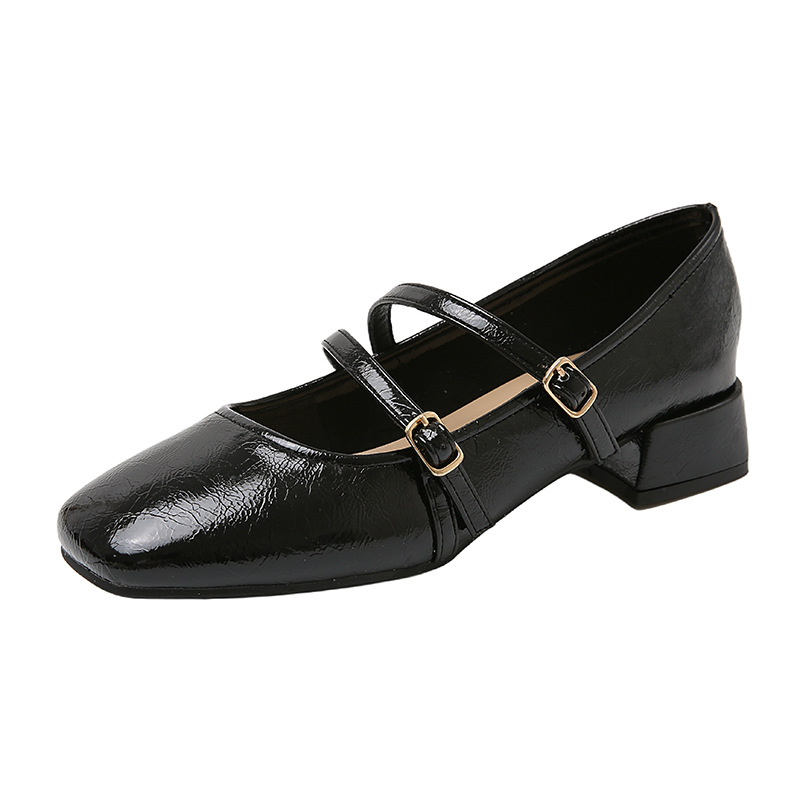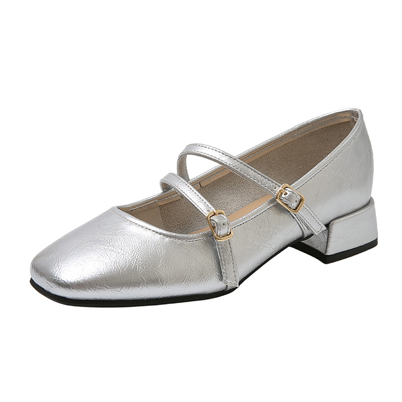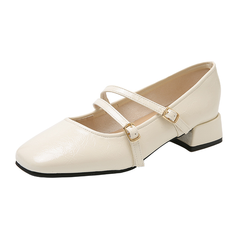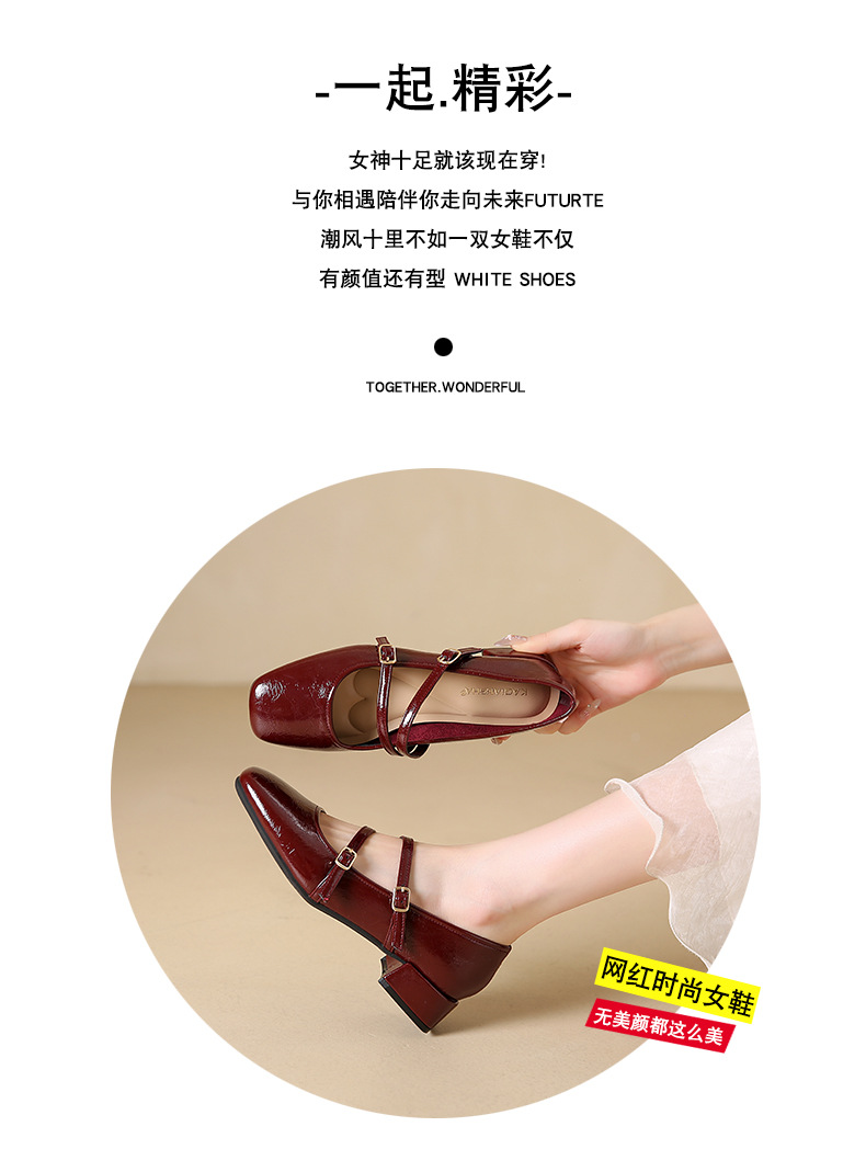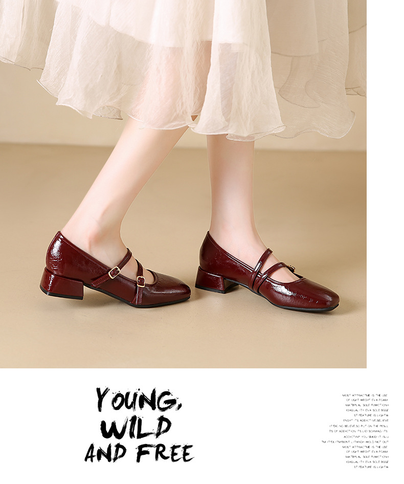 발레 스타일 메리 제인 여성 신발 2025 여름 새 스타일 스커트 스퀘어 발가락 두꺼운 굽 작은 가죽 신발 펌프 신발스토어 가기