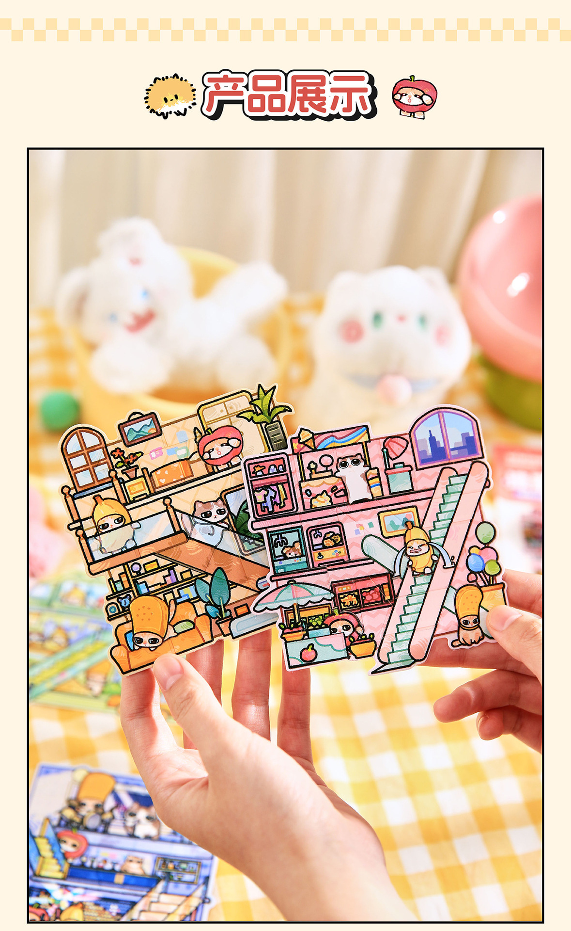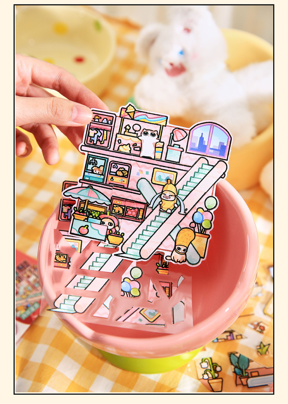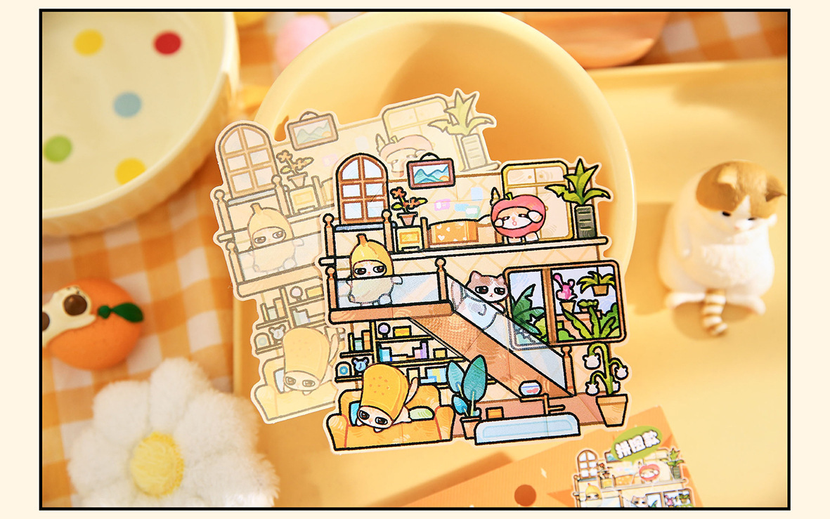 Mr. Paper 콜라주 조경 스티커 라이프 스크린 룸 크리 에이 티브 고양이 소재 어린이 핸드북 재미있는 장식 스티커스토어 가기