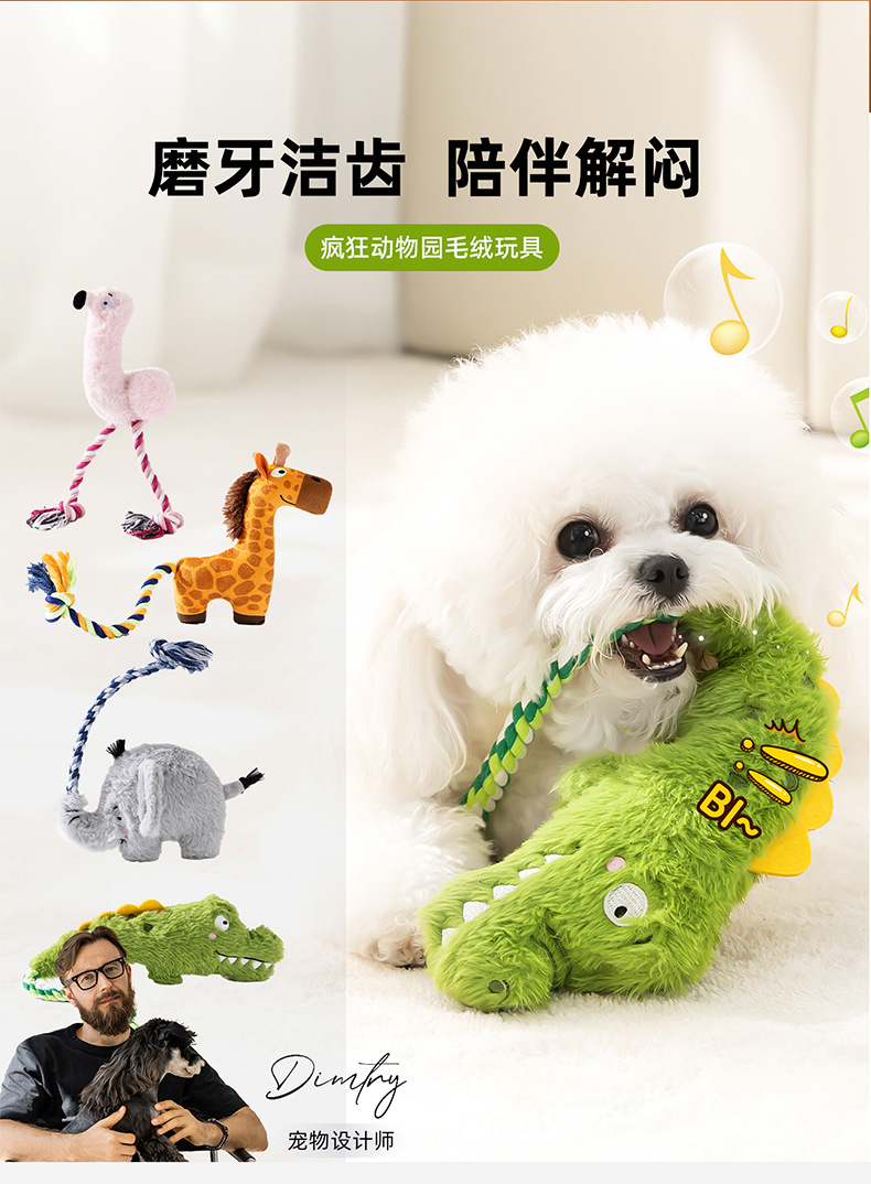 개 장난감 Crazy Zoo 플러시 소리 장난감 중소형 개 어린이를위한 치아 연삭 및 지루함 Bichon 반려 동물 장난감
