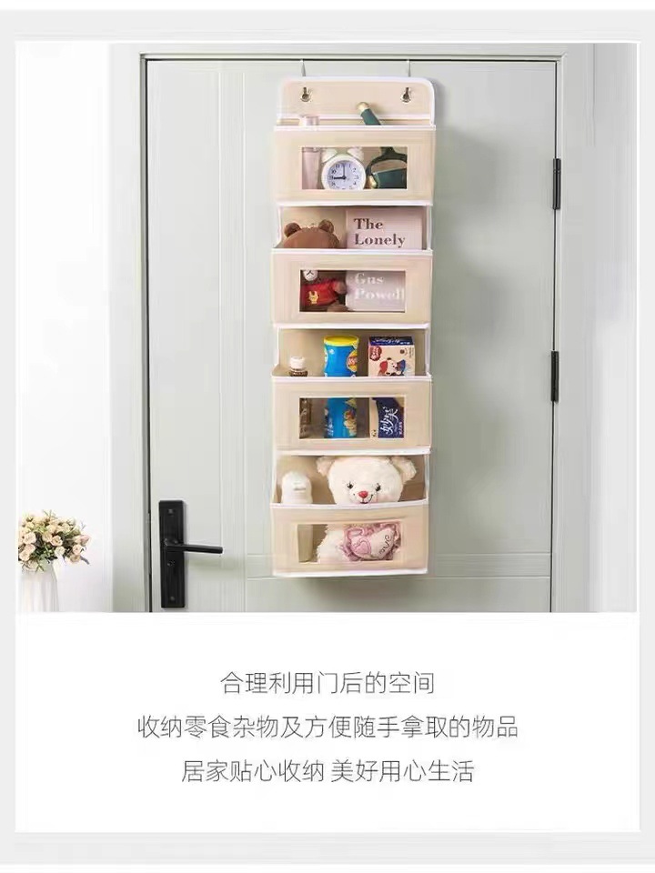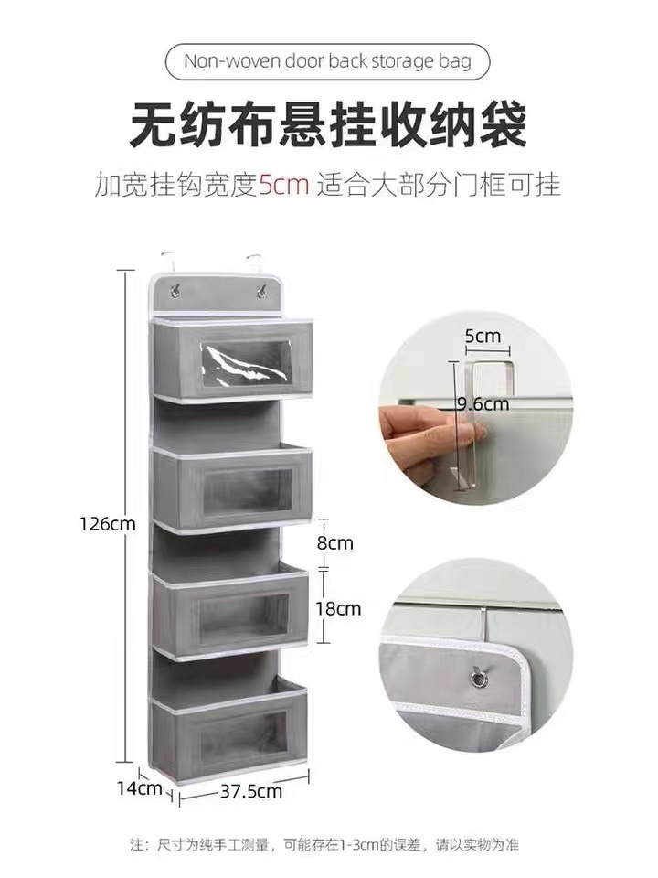 문 뒤에 있는 부직포 수납 걸이 가방, 옷장 걸이 벽, 4층 및 5층 속옷 및 잡화 수납 걸이 가방
