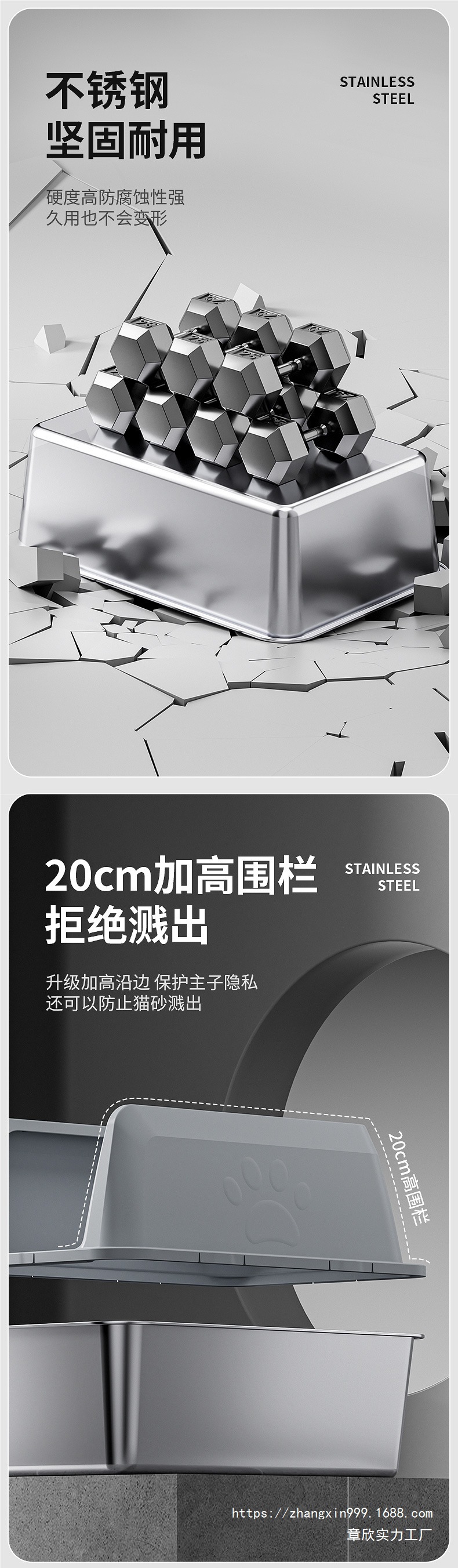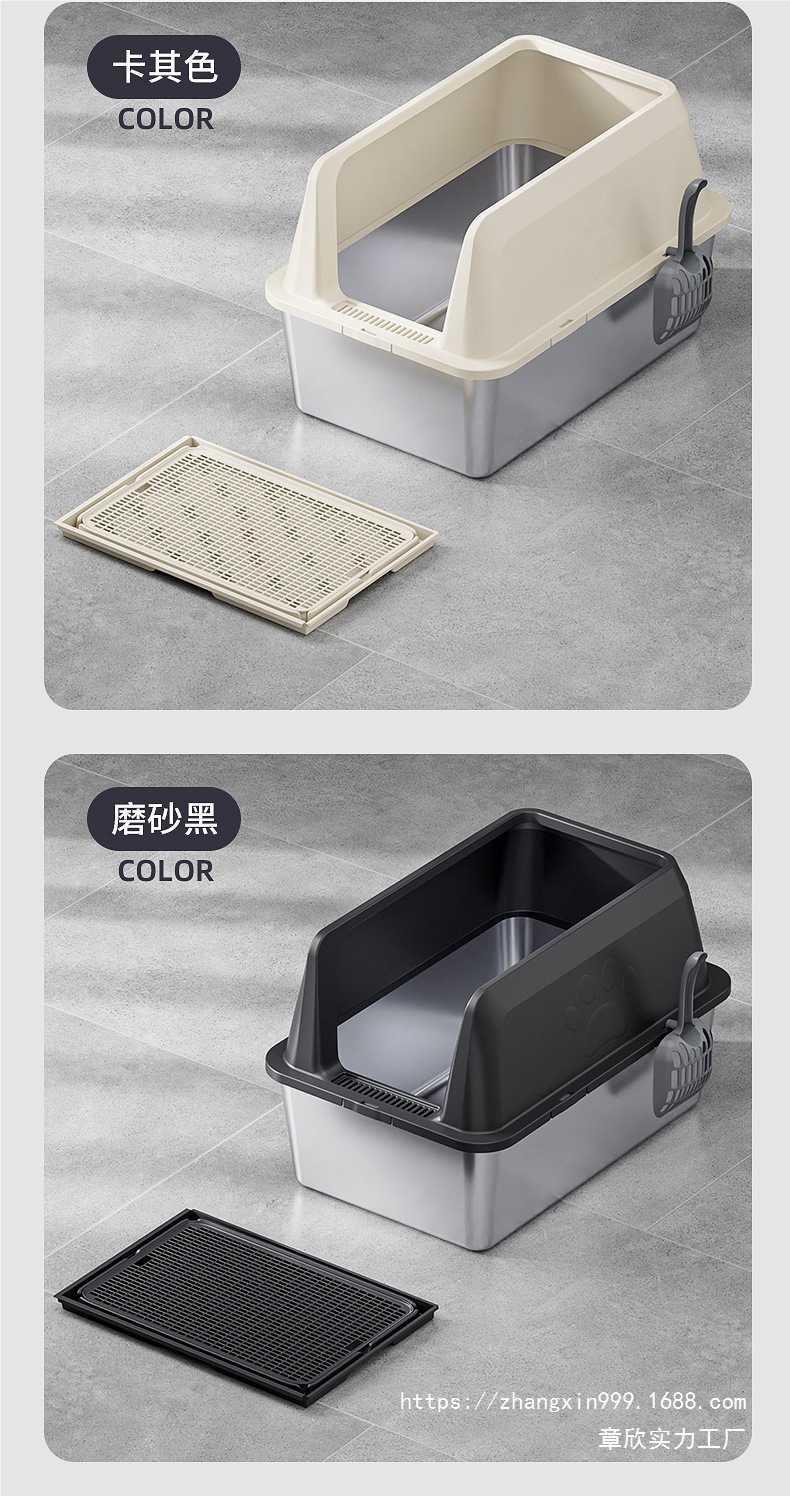 국경 간 높은 울타리 스테인레스 스틸 고양이 쓰레기 상단 투입형 누수 방지 모래 분리형 및 청소가 쉬운 애완 동물 고양이 화장실