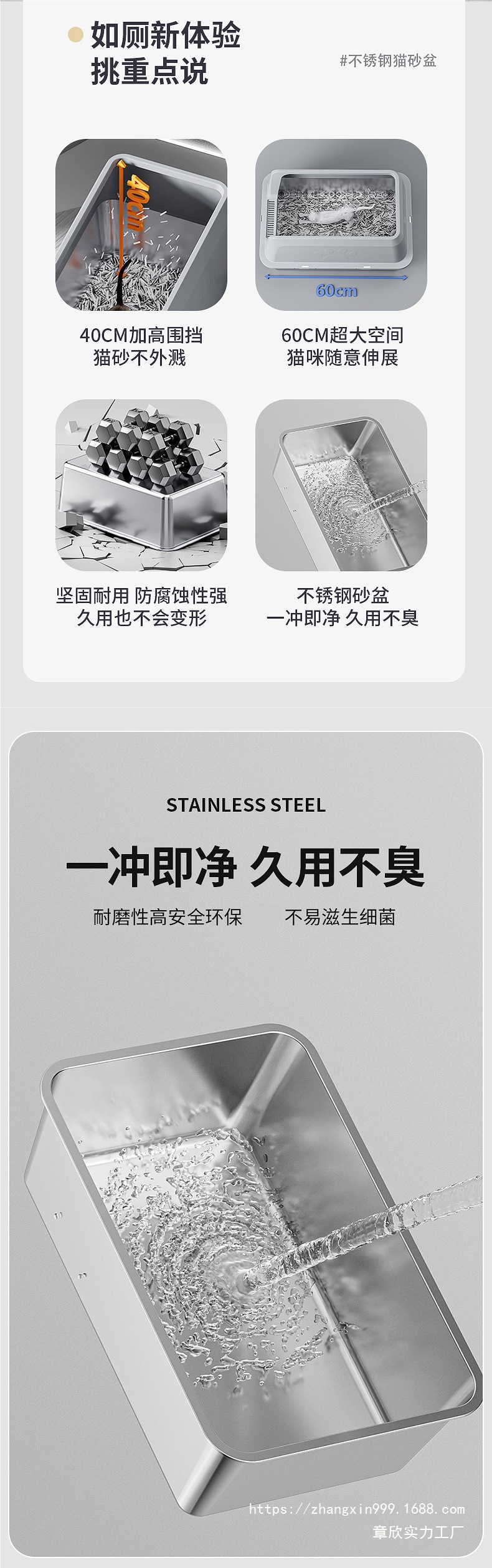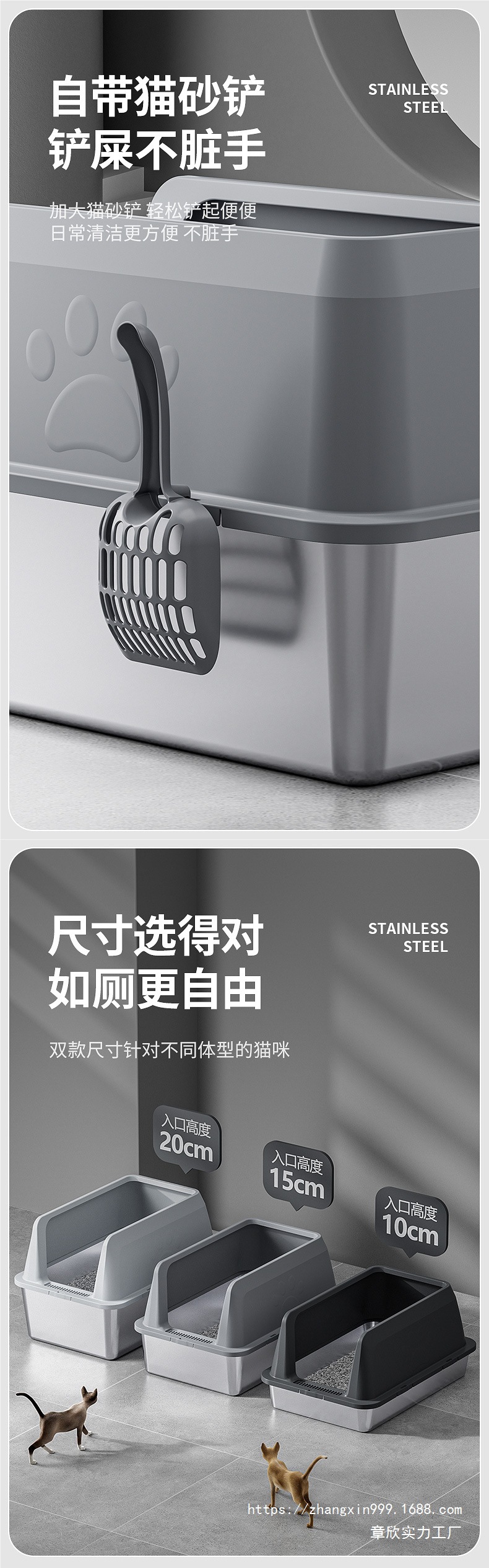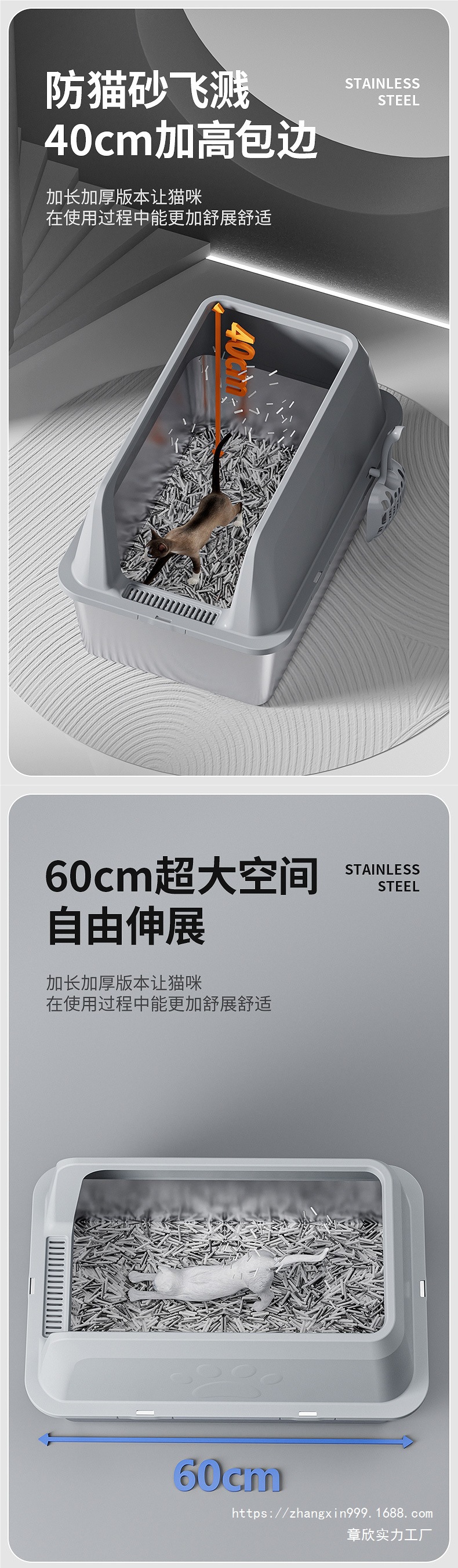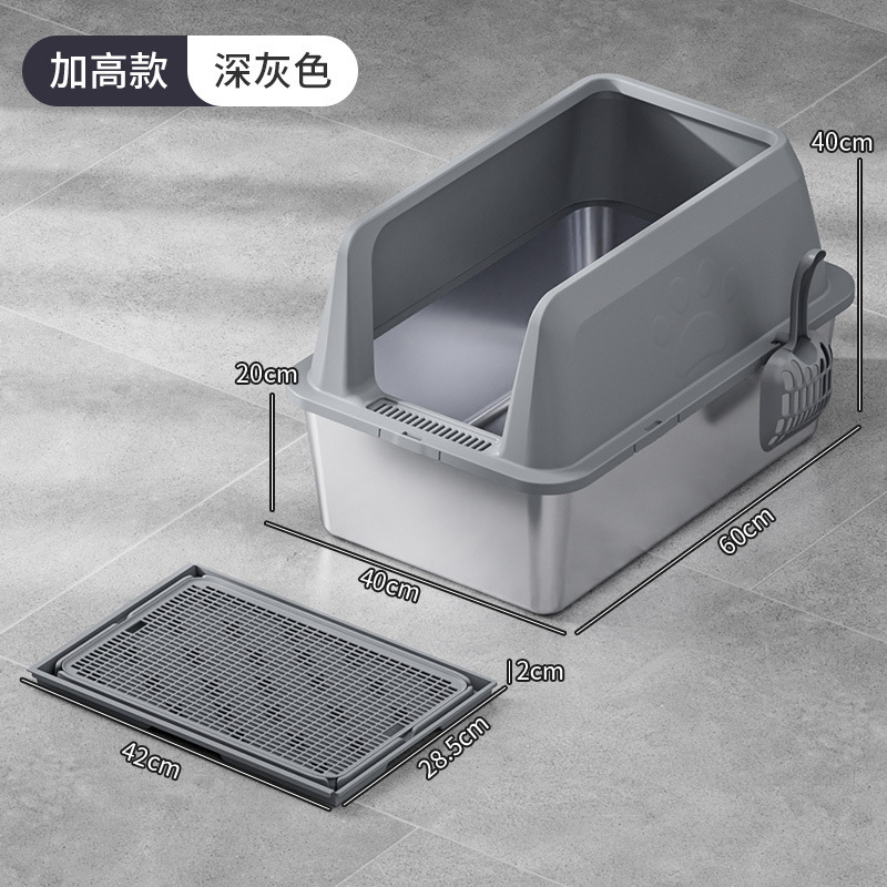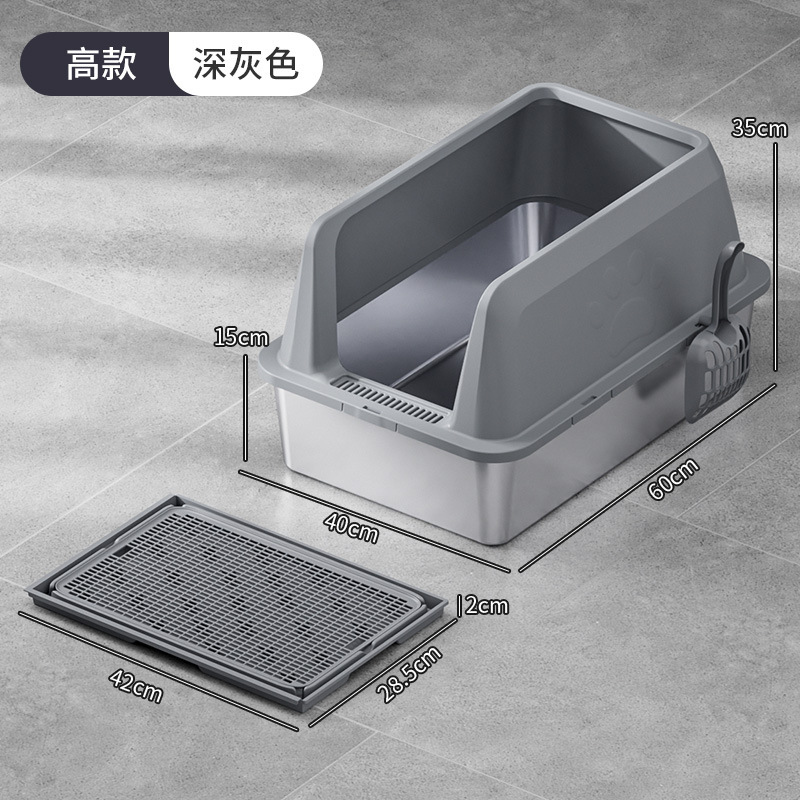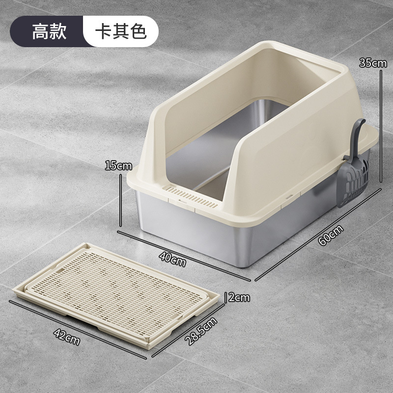국경 간 높은 울타리 스테인레스 스틸 고양이 쓰레기 상단 투입형 누수 방지 모래 분리형 및 청소가 쉬운 애완 동물 고양이 화장실스토어 가기