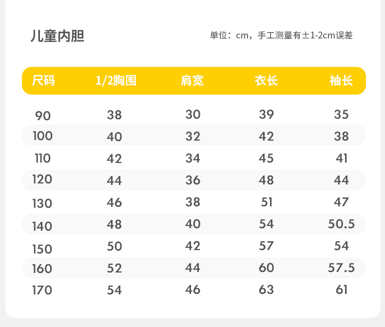 (4)尺码:90码、100码、110码、120码、130码、140码、150码、160码、170码