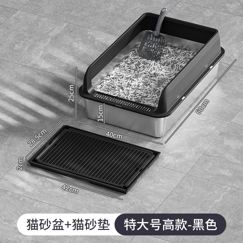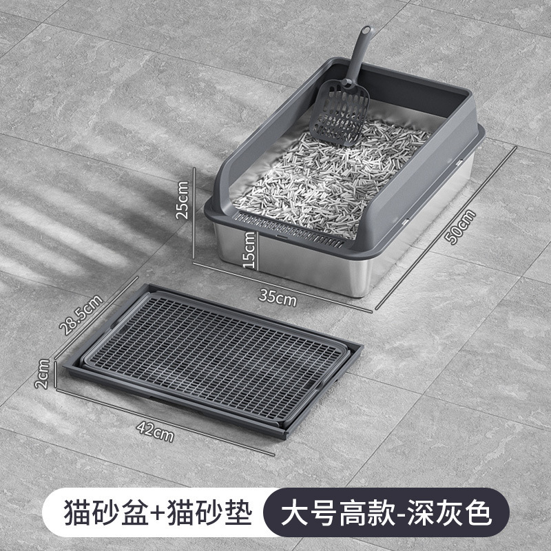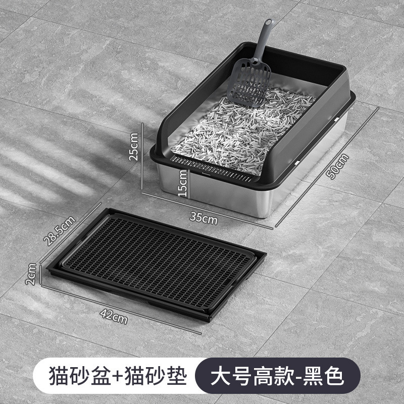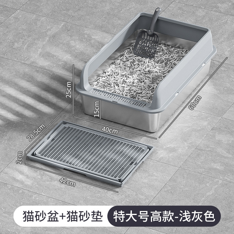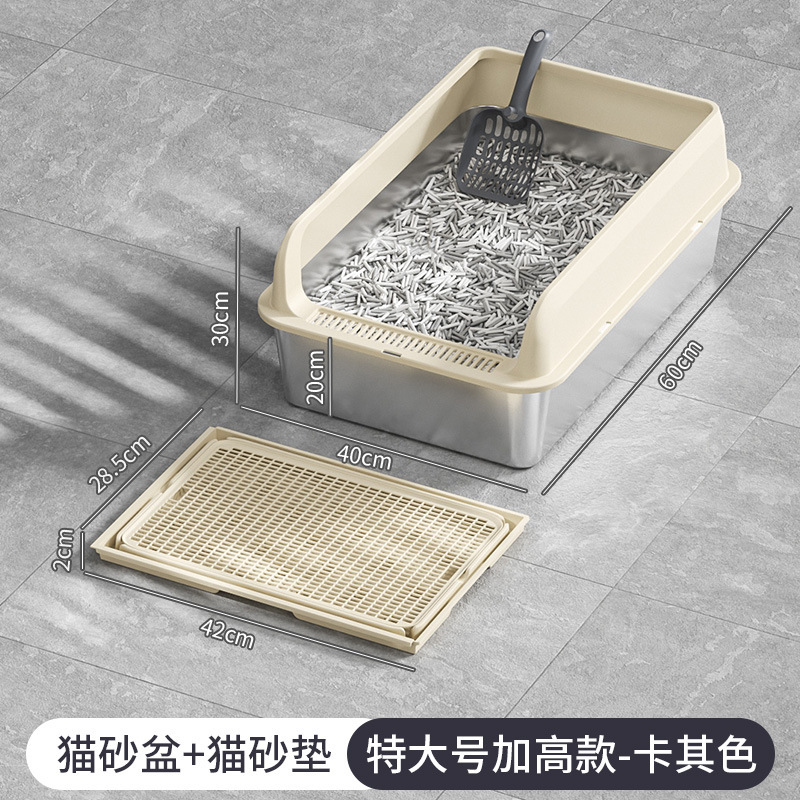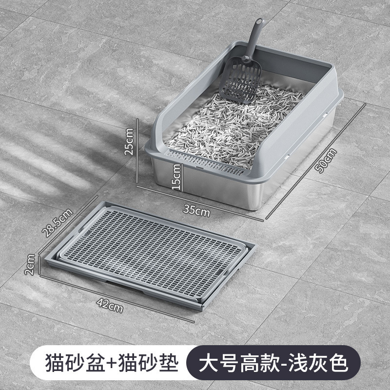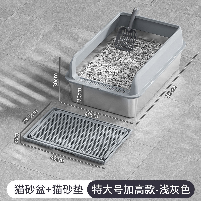 스테인레스 스틸 고양이 쓰레기 상자, 상단 입구 고양이 화장실, 물 튀김 방지 및 모래 페달 고양이 쓰레기 상자 애완 동물 용품