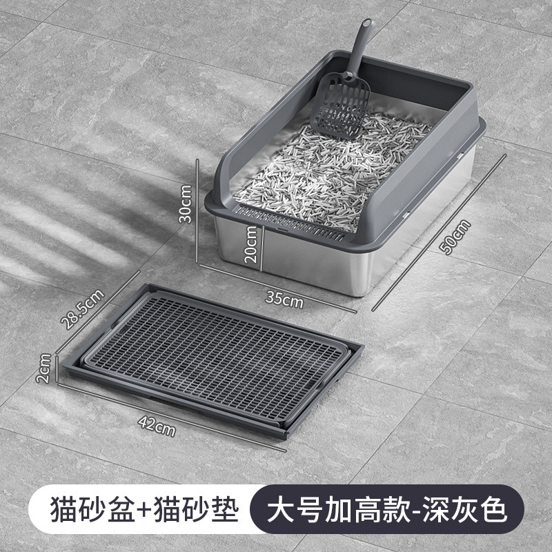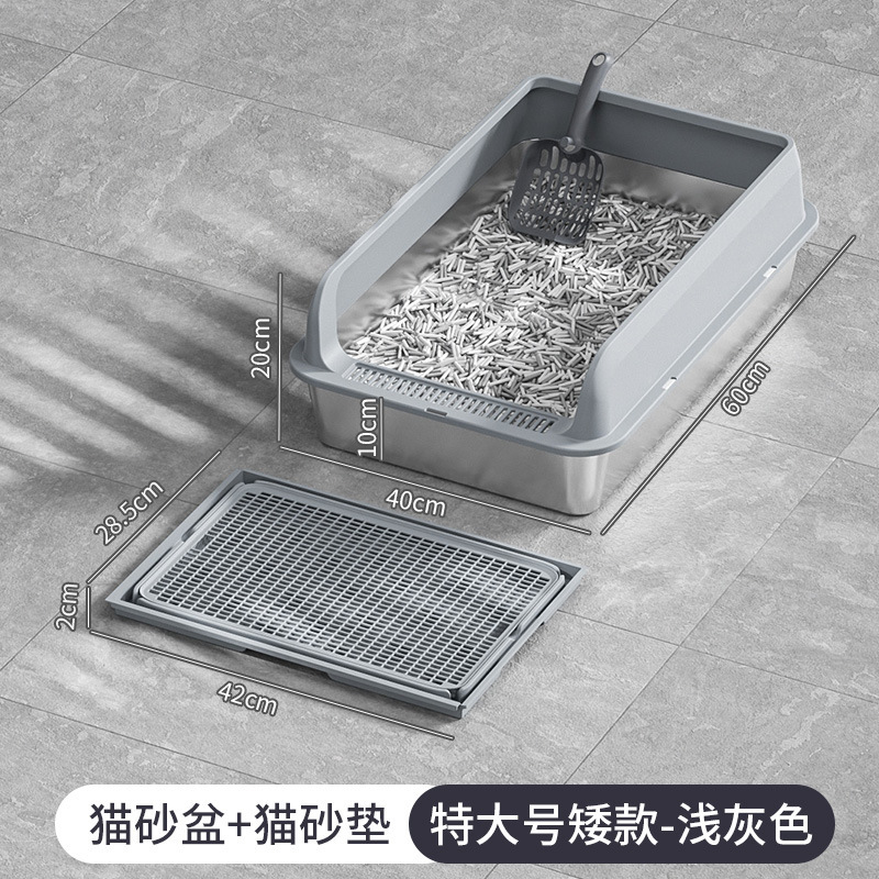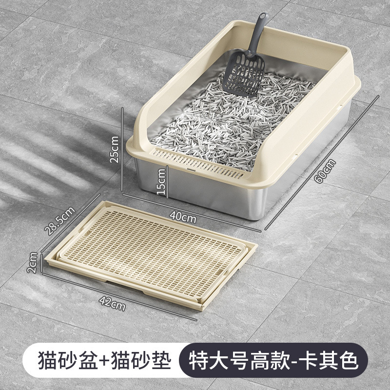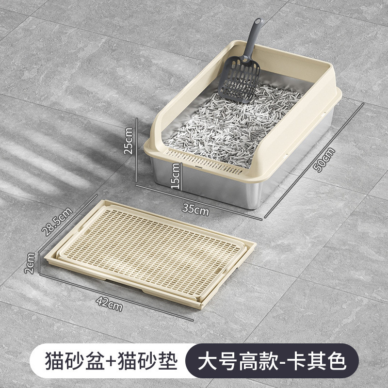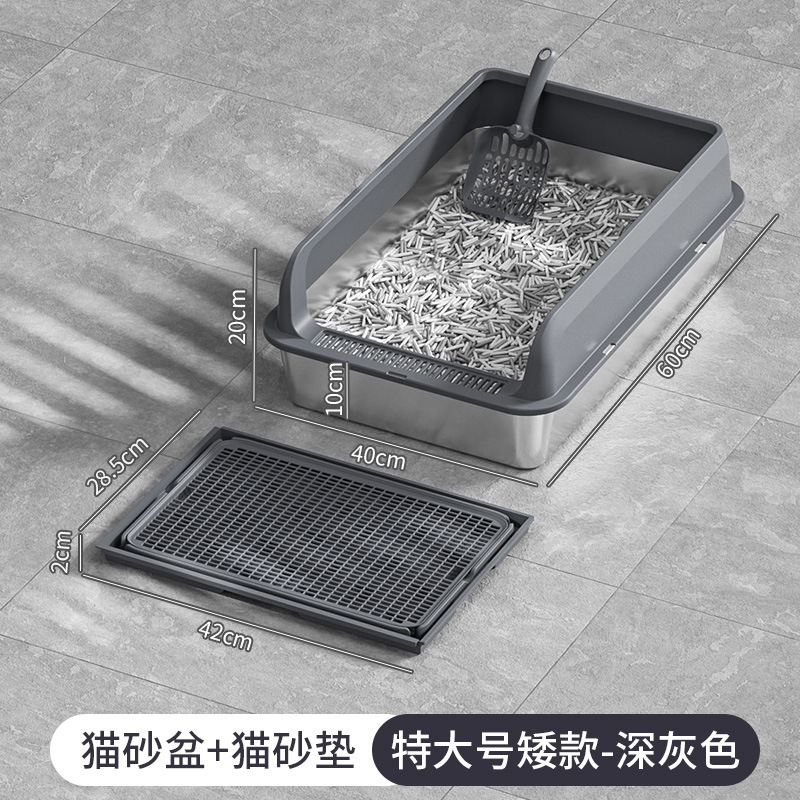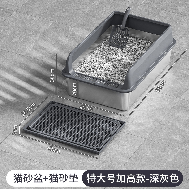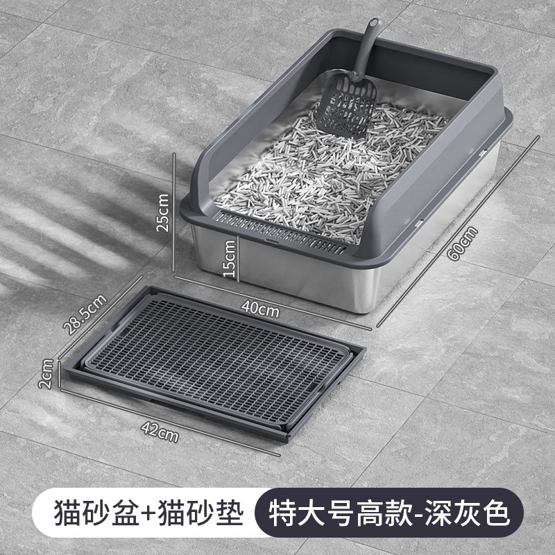 스테인레스 스틸 고양이 쓰레기 상자, 상단 입구 고양이 화장실, 물 튀김 방지 및 모래 페달 고양이 쓰레기 상자 애완 동물 용품