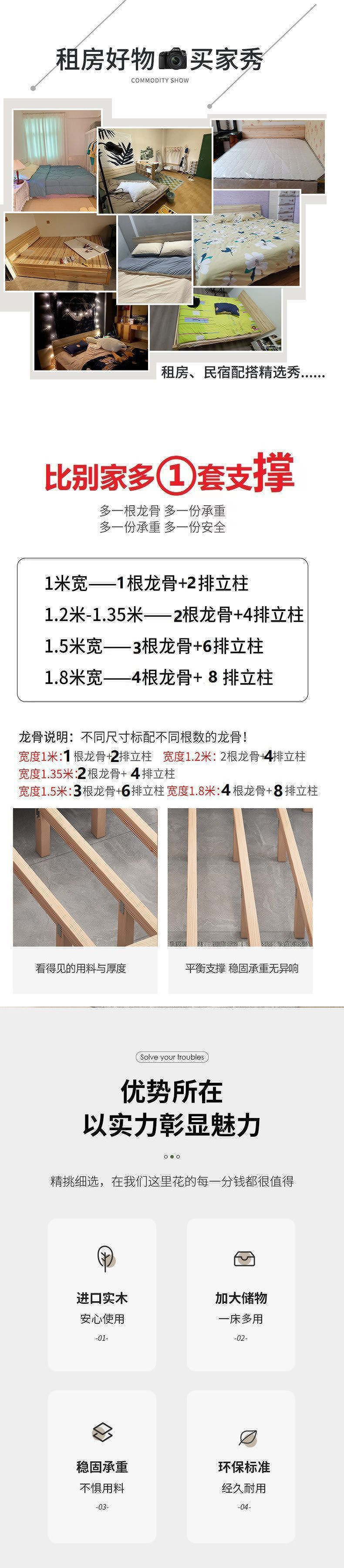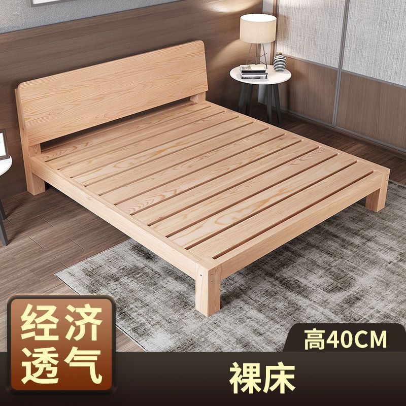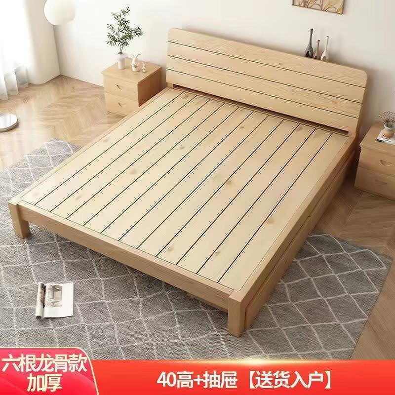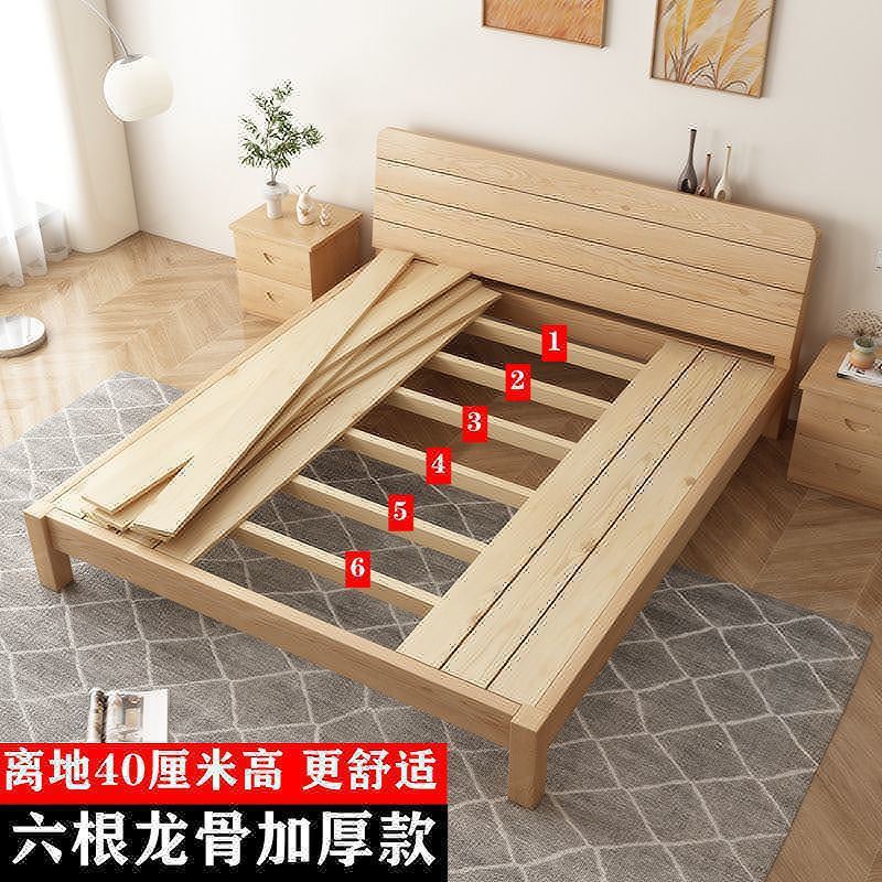 • [두꺼운 용골 6개] 원목침대 높이 40