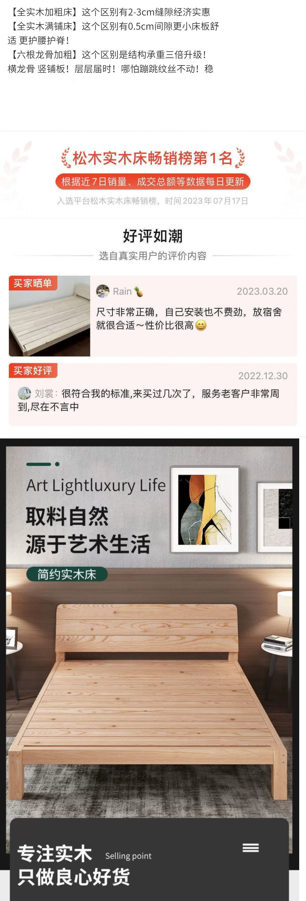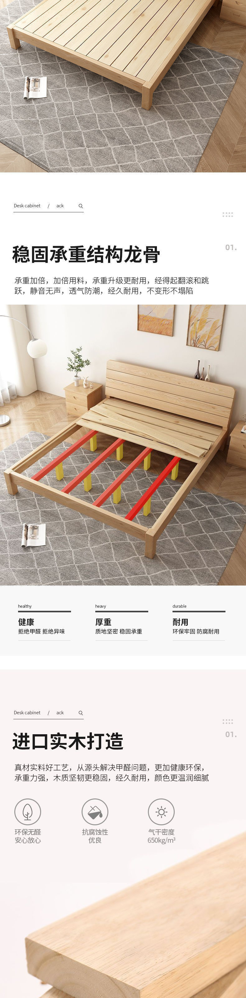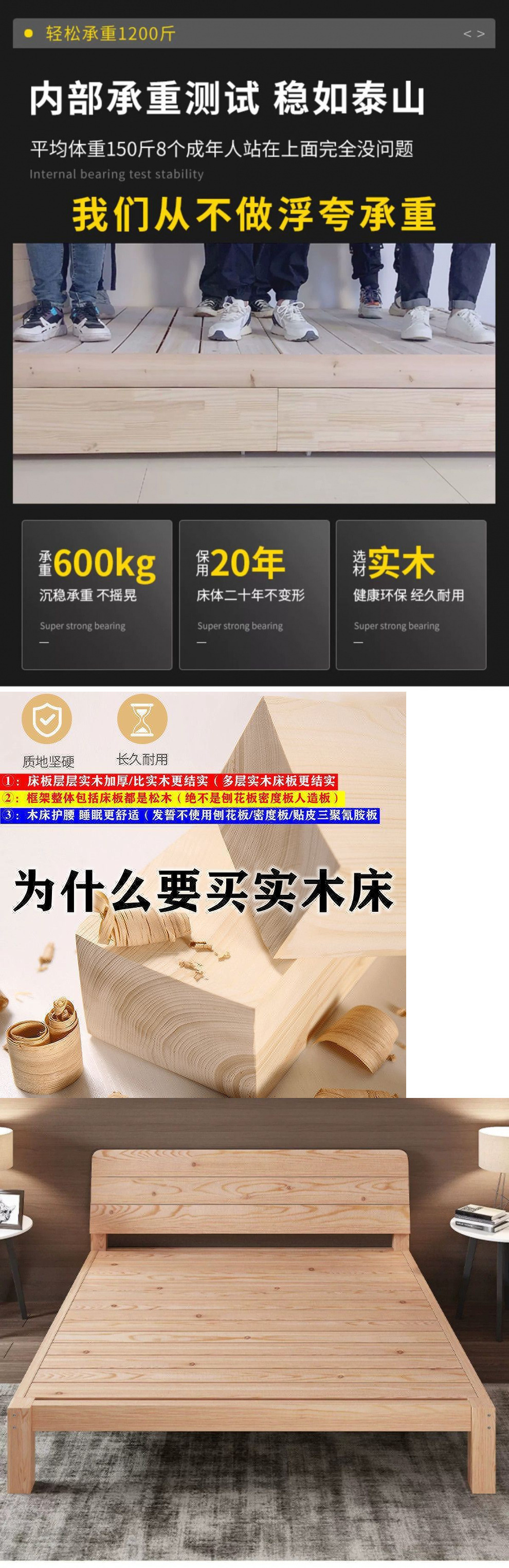 • [두꺼운 용골 6개] 원목침대 높이 40