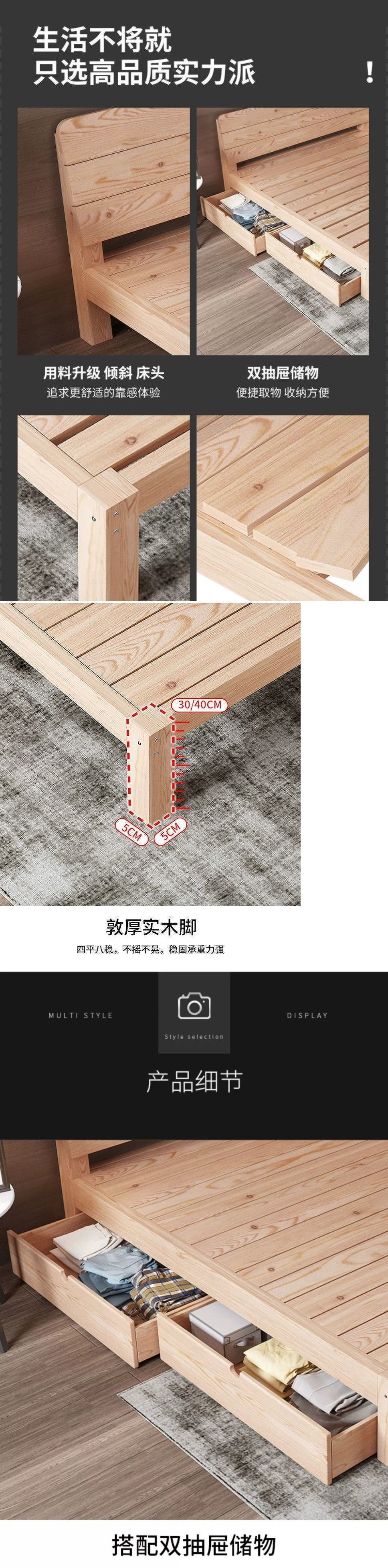 • [두꺼운 용골 6개] 원목침대 높이 40 + 서랍