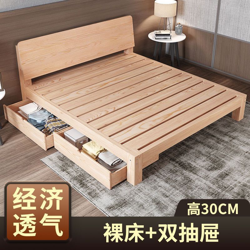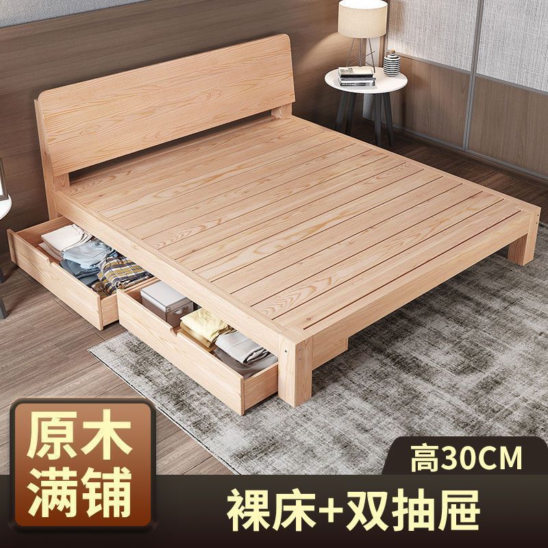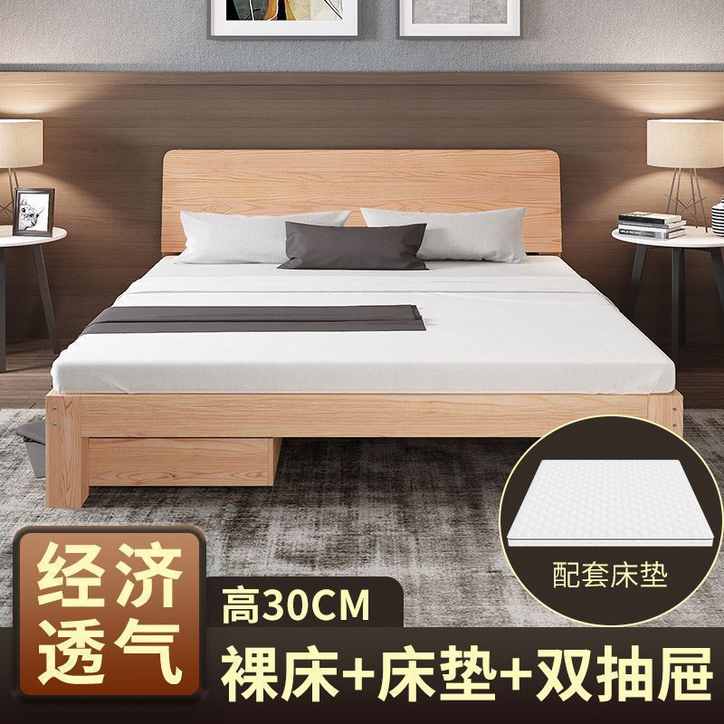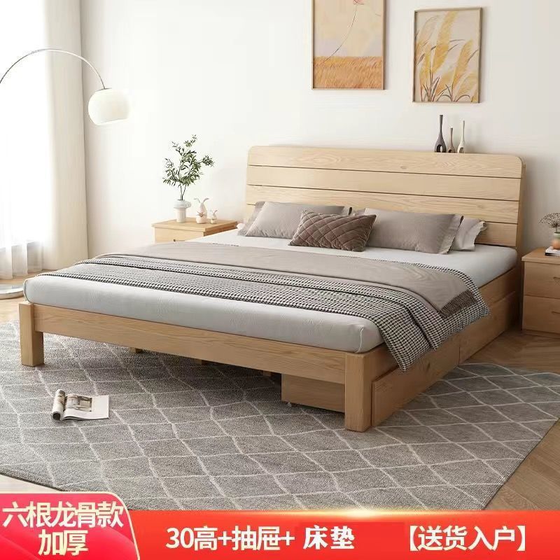 • [두꺼운 용골 6개] 원목침대 30 높이 + 서랍 + 매트