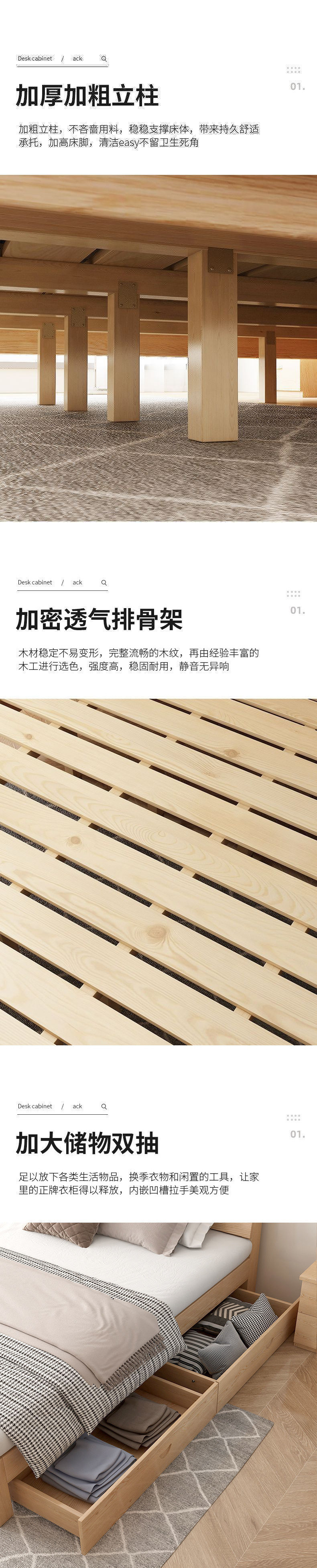 • [두꺼운 용골 6개] 원목침대 높이 30 + 서랍