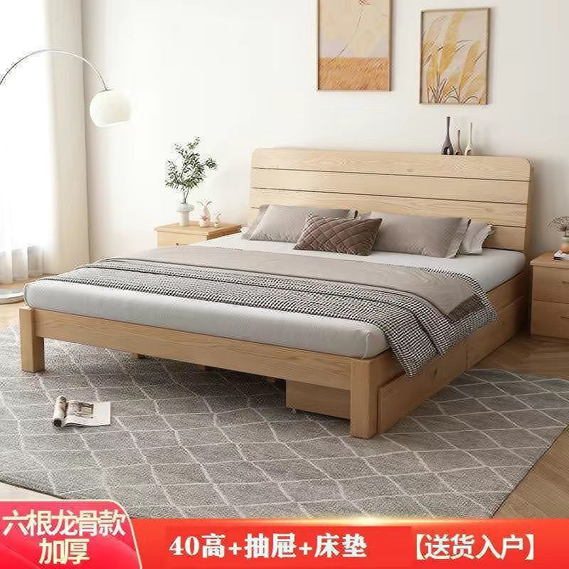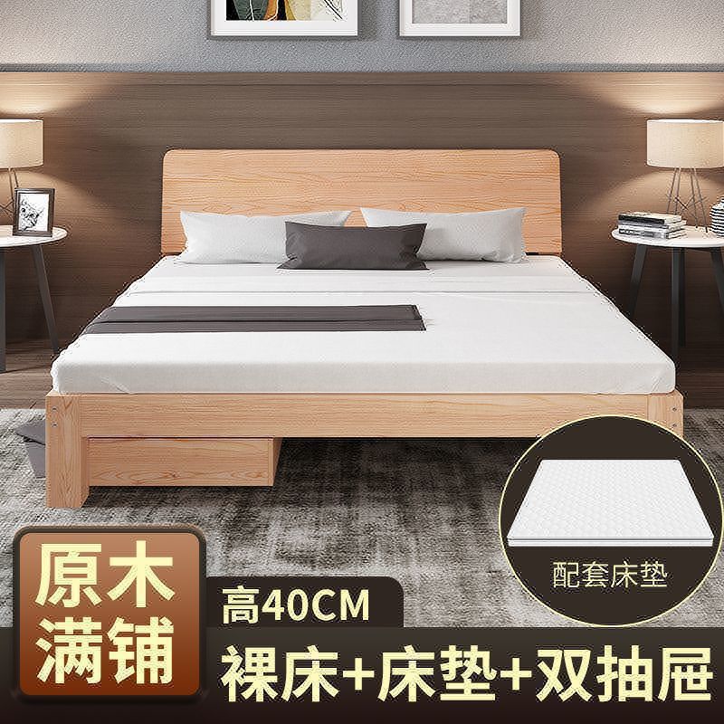 • [두꺼운 용골 6개] 원목침대 높이 40 + 매트 + 서랍