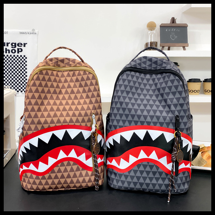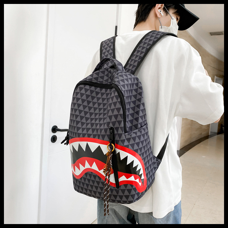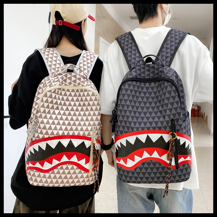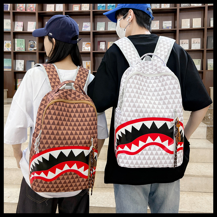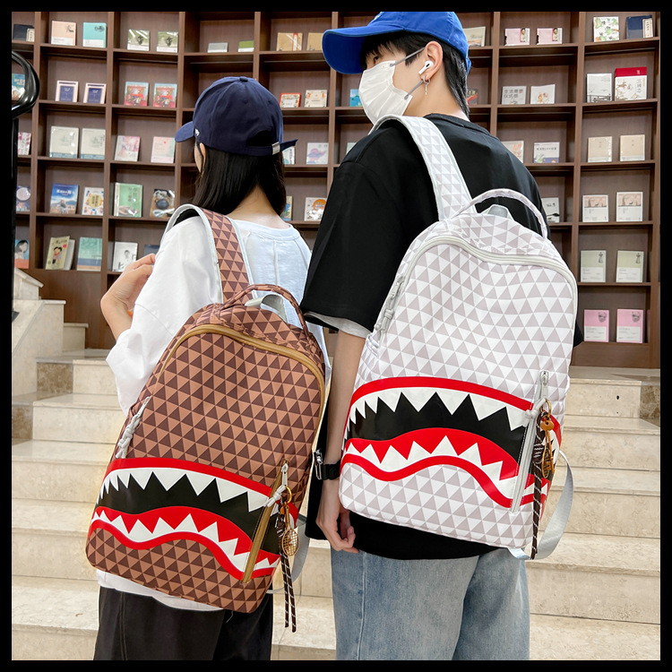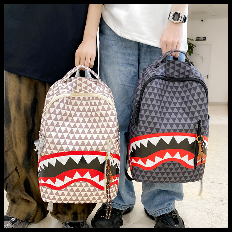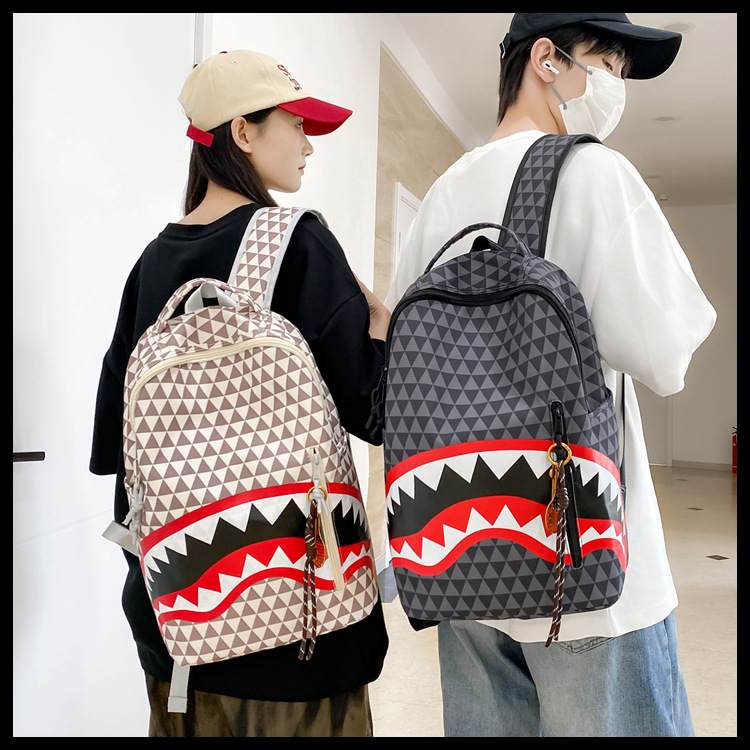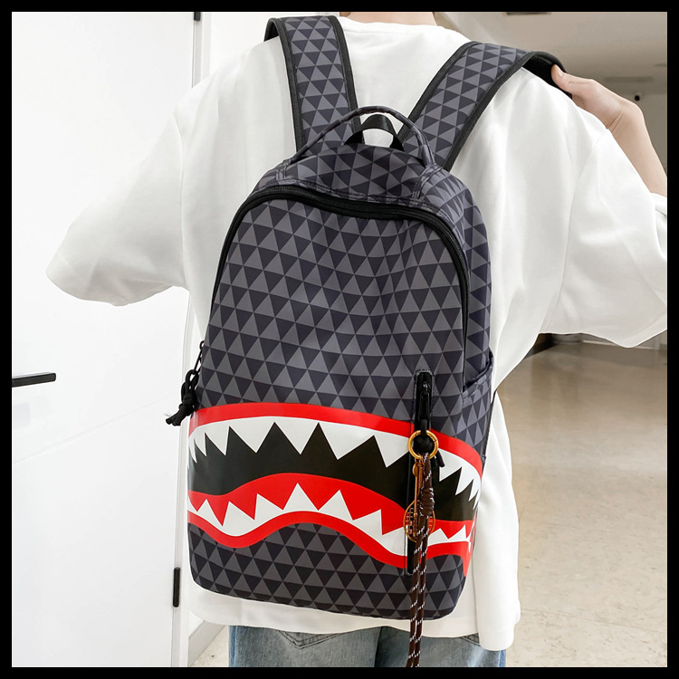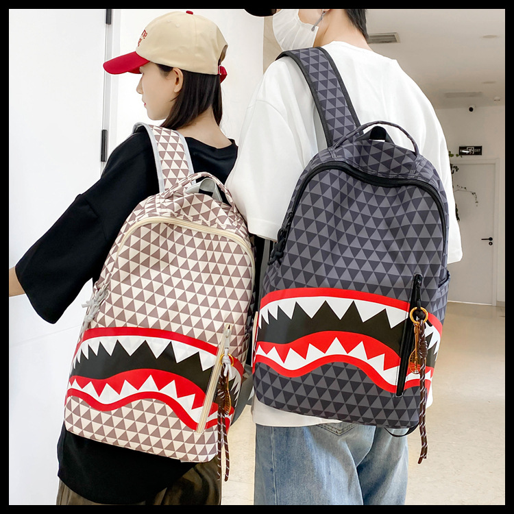 남자 틈새 패션 격자 무늬 상어 가방 배낭 학생 학교 가방 대용량 거리 배낭 여행 가방 도매스토어 가기