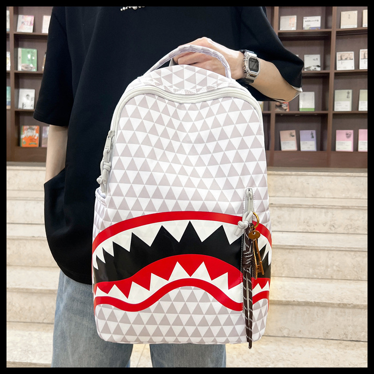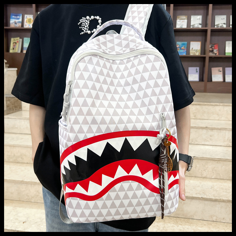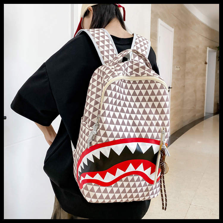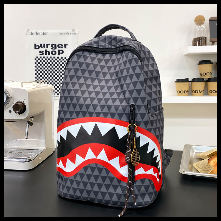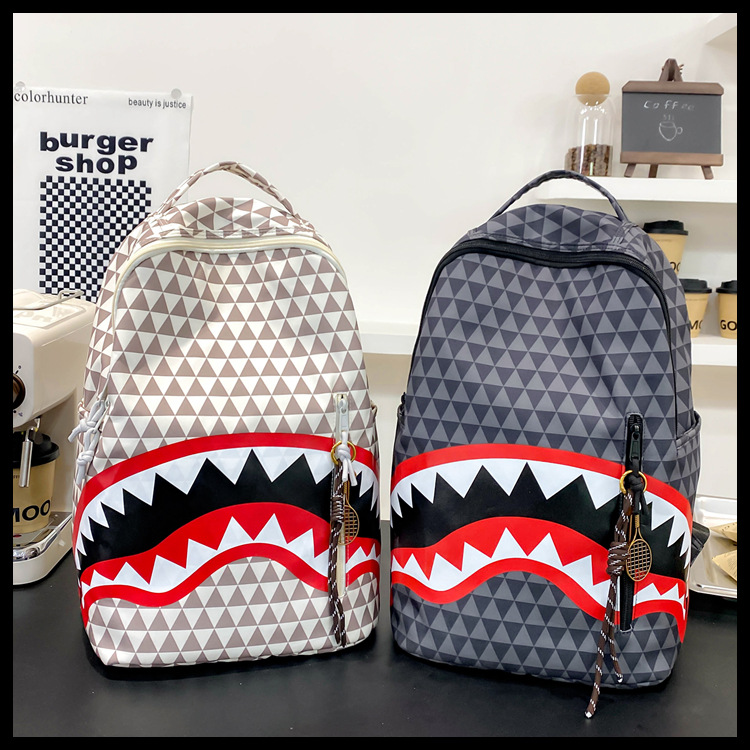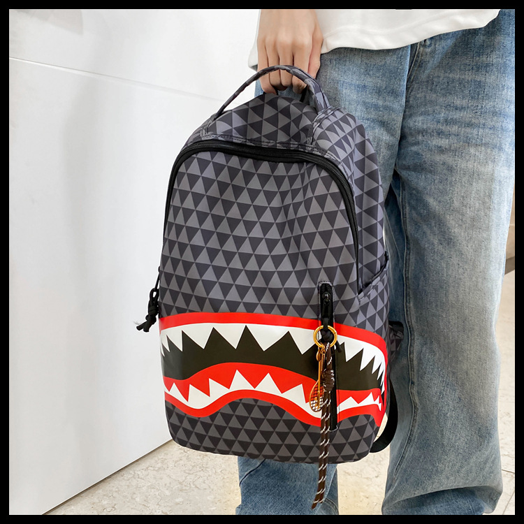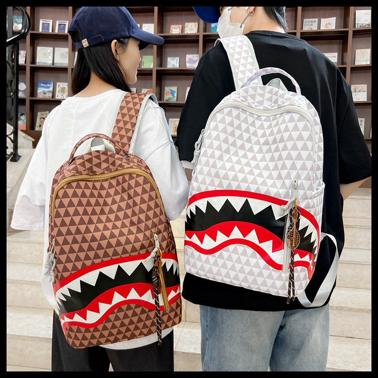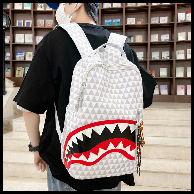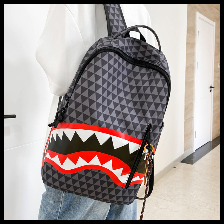 남자 틈새 패션 격자 무늬 상어 가방 배낭 학생 학교 가방 대용량 거리 배낭 여행 가방 도매스토어 가기