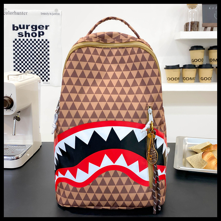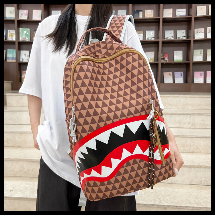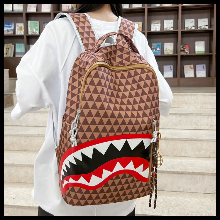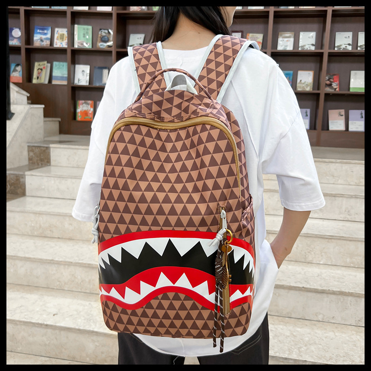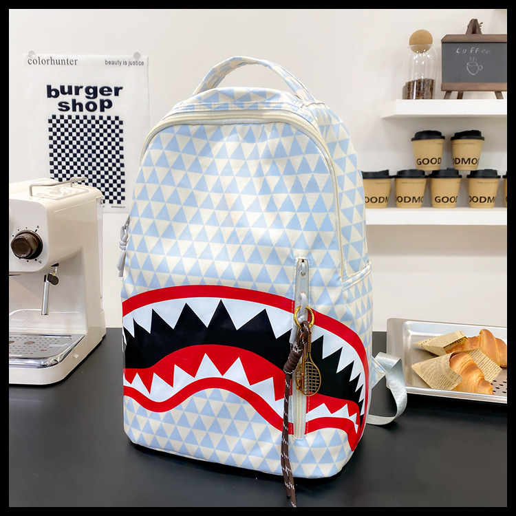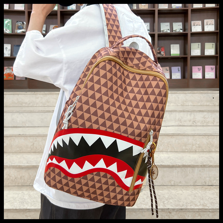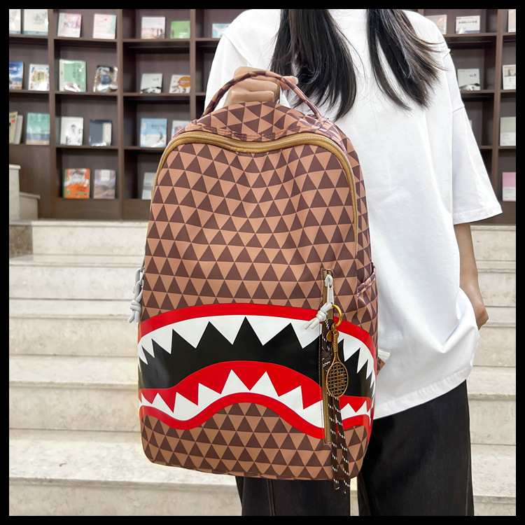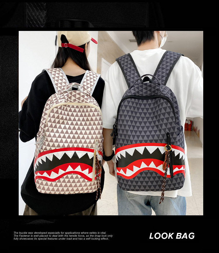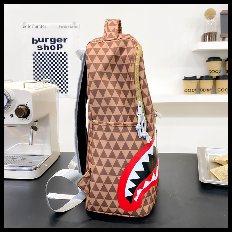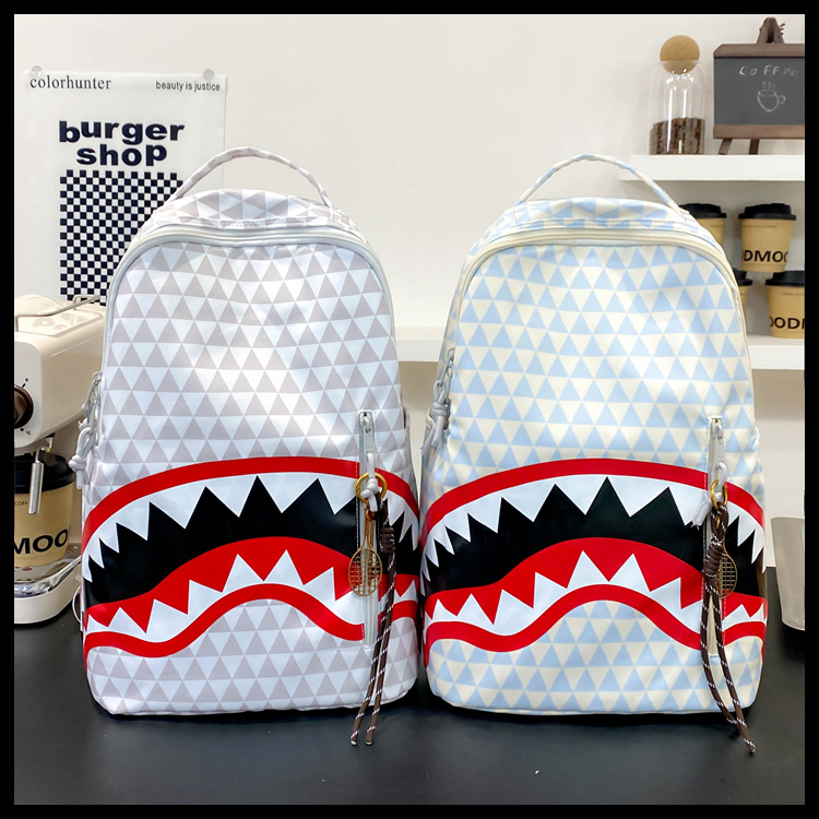 남자 틈새 패션 격자 무늬 상어 가방 배낭 학생 학교 가방 대용량 거리 배낭 여행 가방 도매스토어 가기