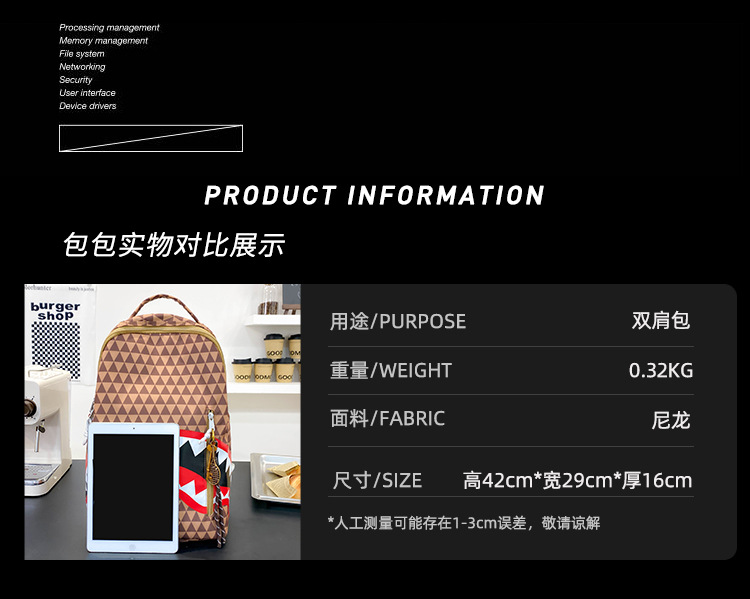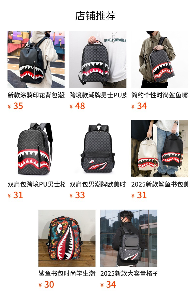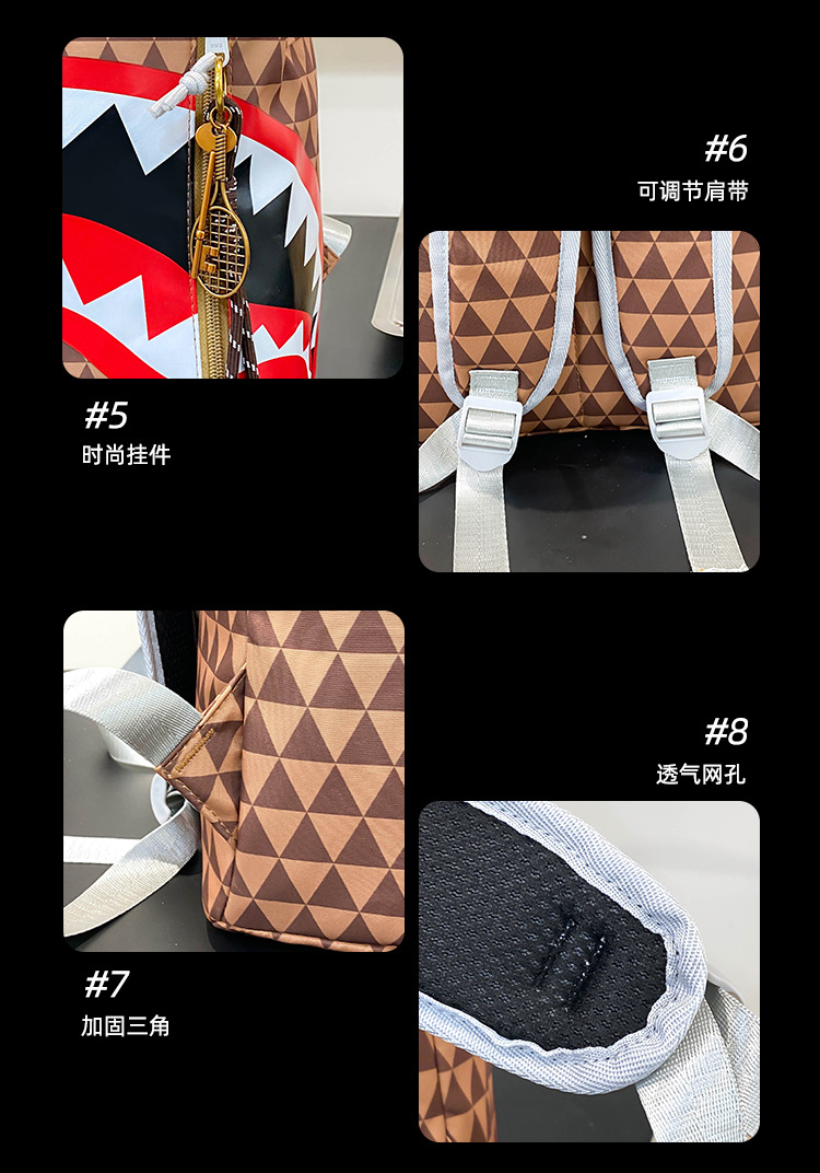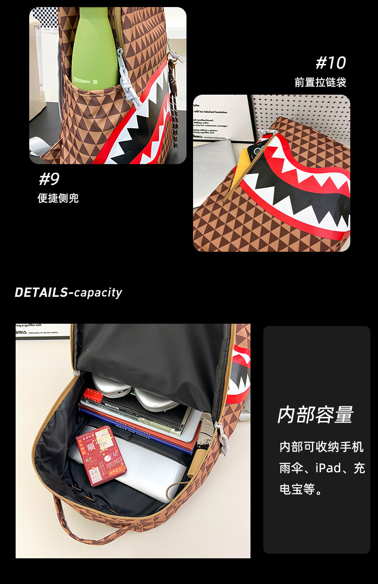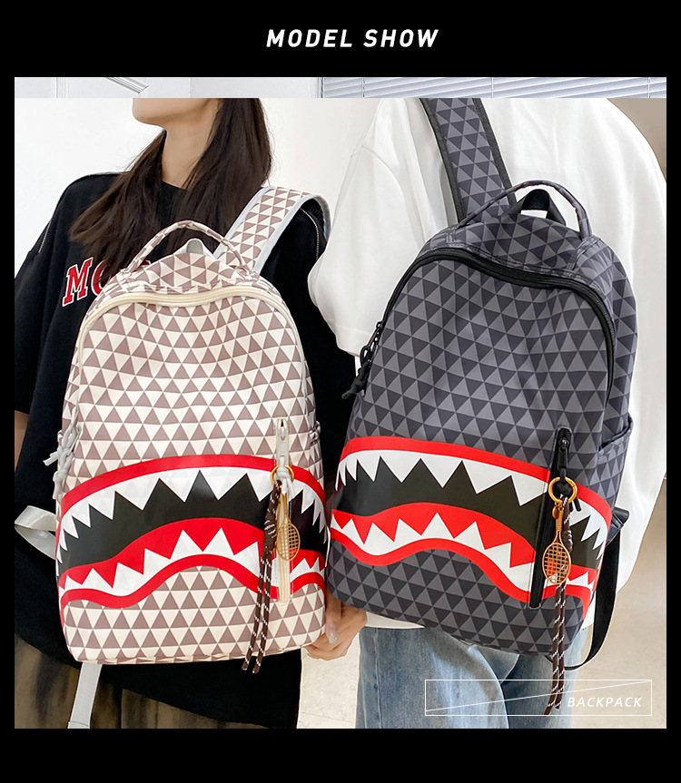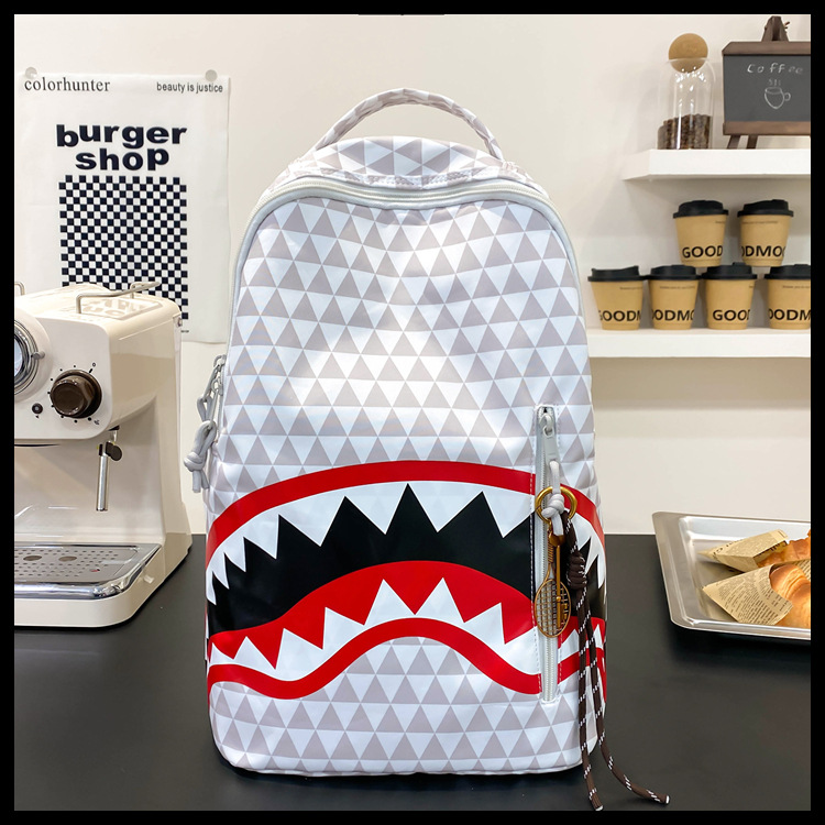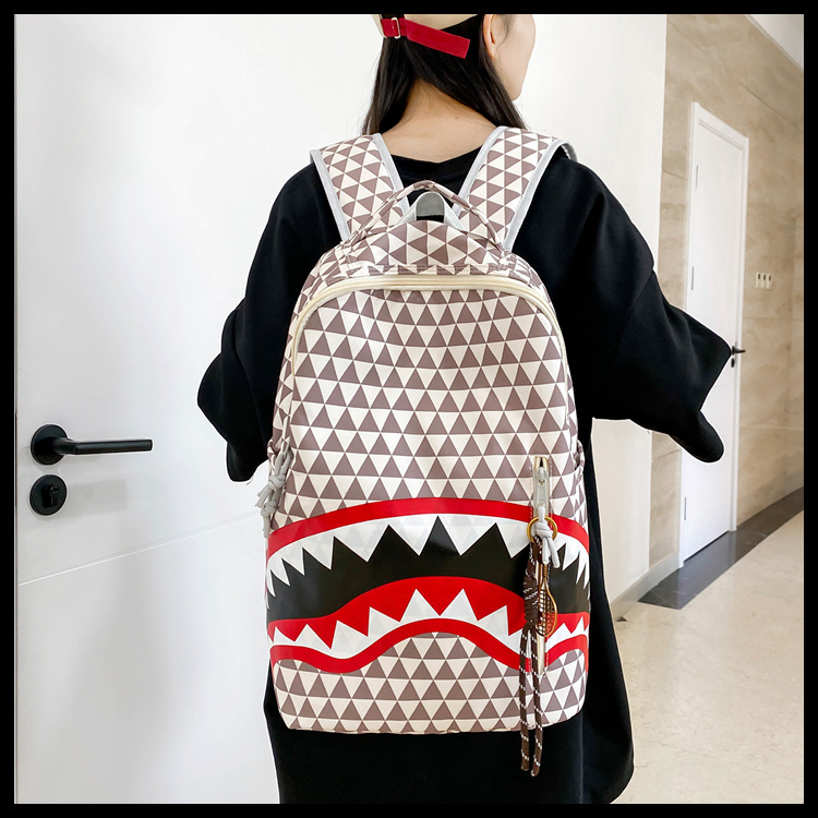 남자 틈새 패션 격자 무늬 상어 가방 배낭 학생 학교 가방 대용량 거리 배낭 여행 가방 도매스토어 가기