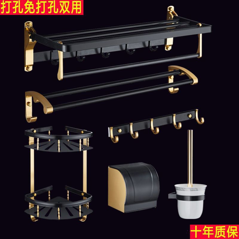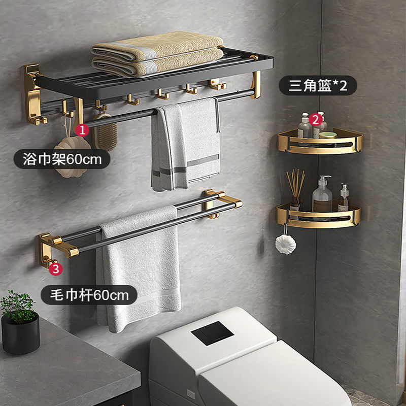 도매 블랙 골드 욕실 선반 펀치없는 공간 알루미늄 화장실 수건 선반 벽걸이 형 스토리지 랙 홈 세트