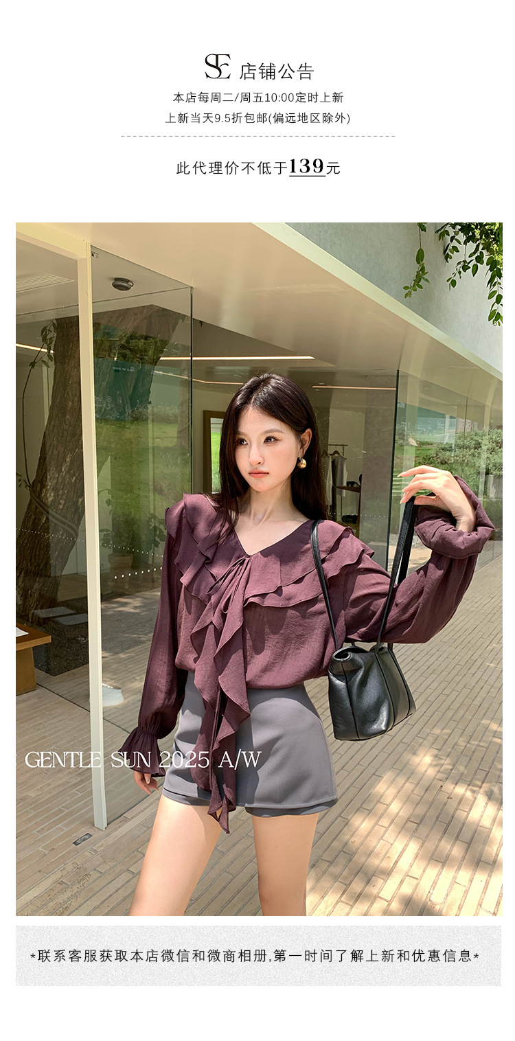 Xiuxixi 2025 가을 화이트 라벨 슬리밍 기질 다용도 연잎 브이넥 쉬폰 탑 여성용 긴팔 셔츠 89553스토어 가기
