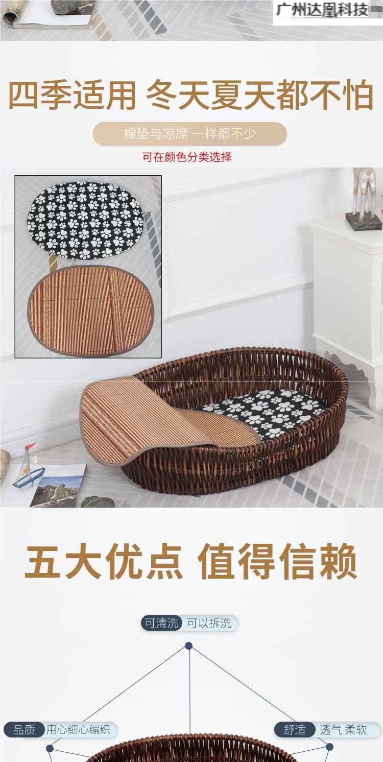 소형 및 중형견을 위한 등나무로 짠 여름 테디 개집, 탈부착 및 세탁 가능한 매트, 애완동물 개집, 등나무로 짠 고양이 개집, 사계절 모두 사용 가능