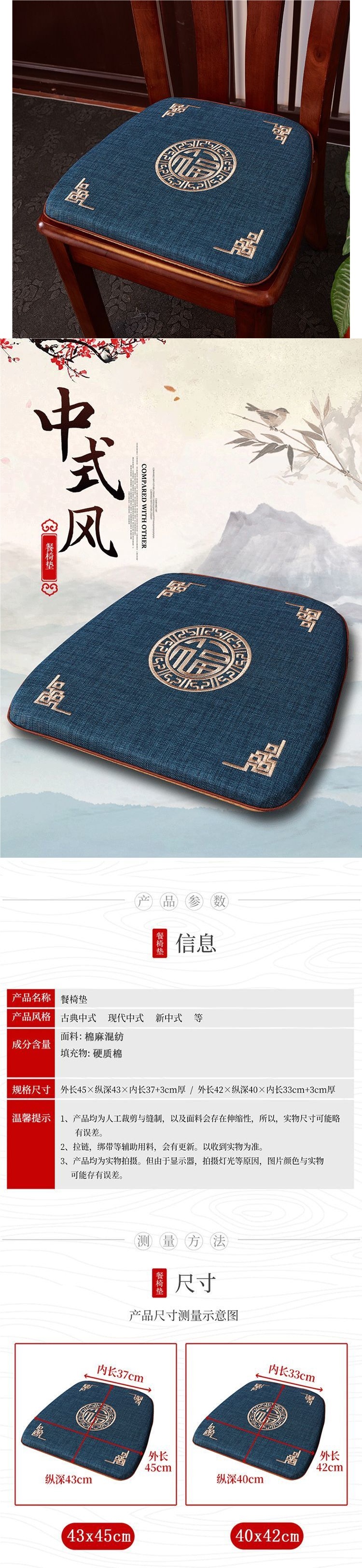 중국 자수 의자 쿠션 말굽 모양의 쿠션 가정용 미끄럼 방지 마호가니 식당 의자 분리형 및 세척 가능한 좌석스토어 가기
