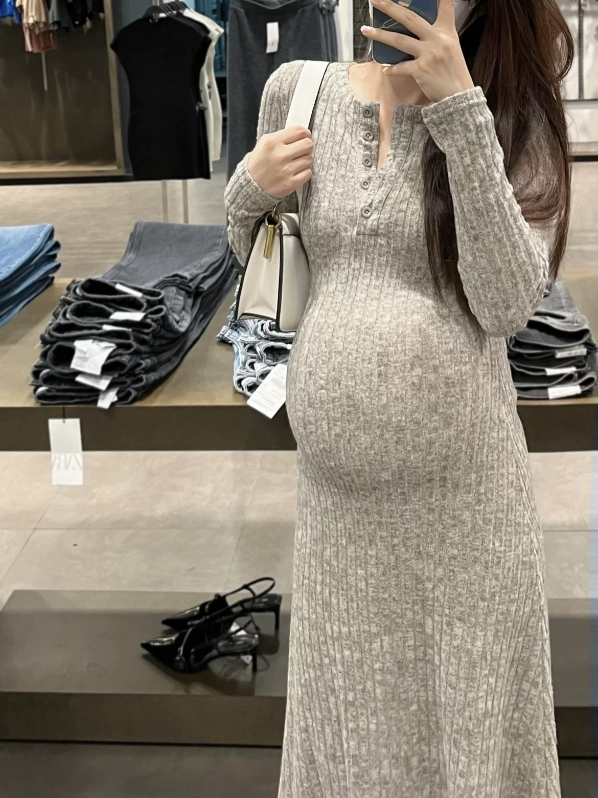 2025 새로운 프랑스 가을 겨울 스타일 허리 슬림 롱 스커트 바닥 슬리밍 긴팔 니트 드레스 스커트스토어 가기