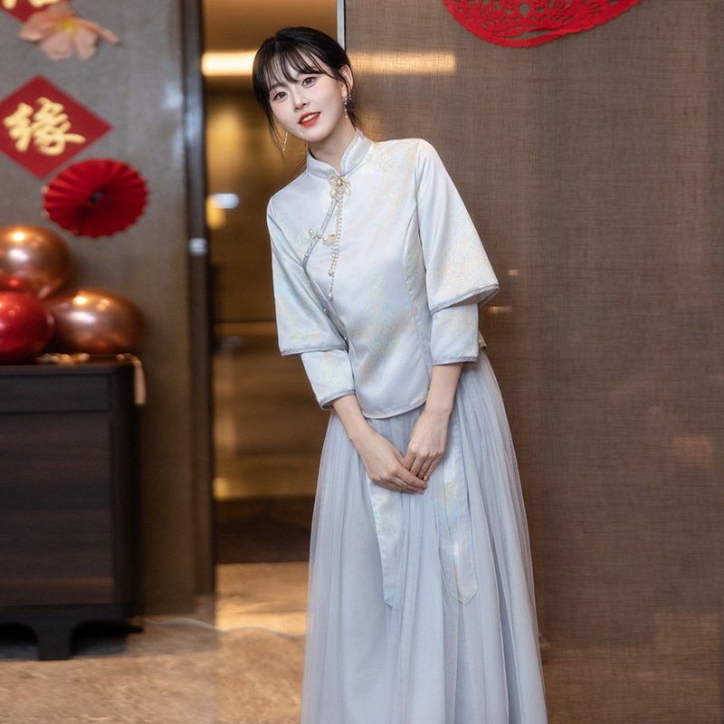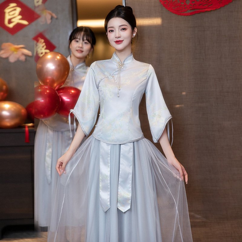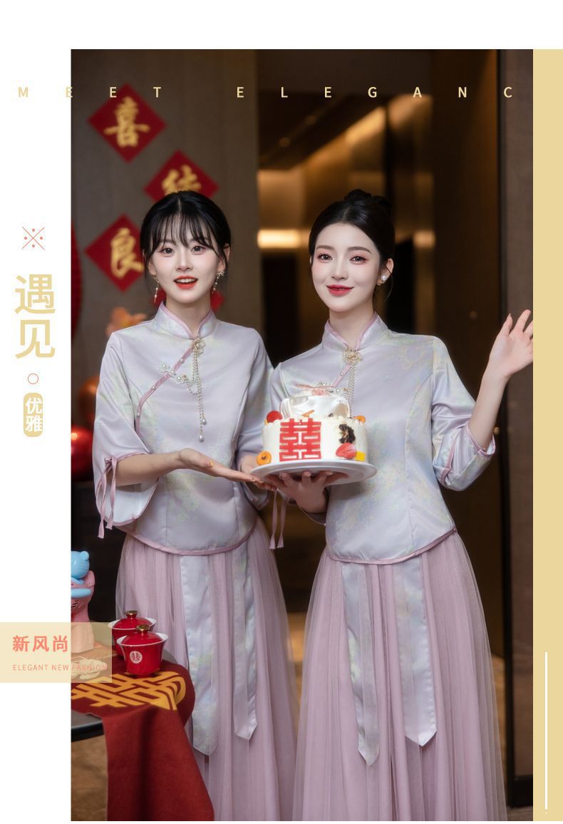 伴娘服中式2024姐妹团宴会礼服女长款复古中国风闺蜜伴娘裙伴娘服스토어 가기