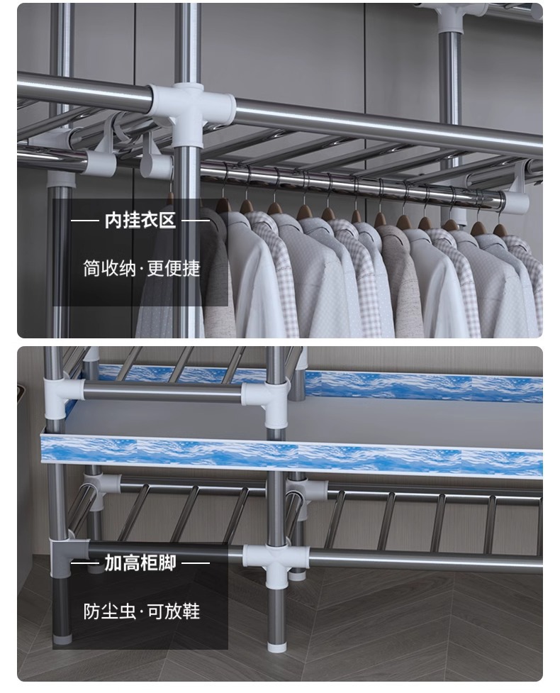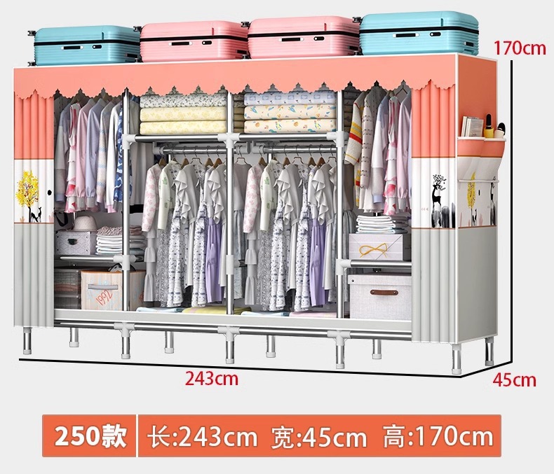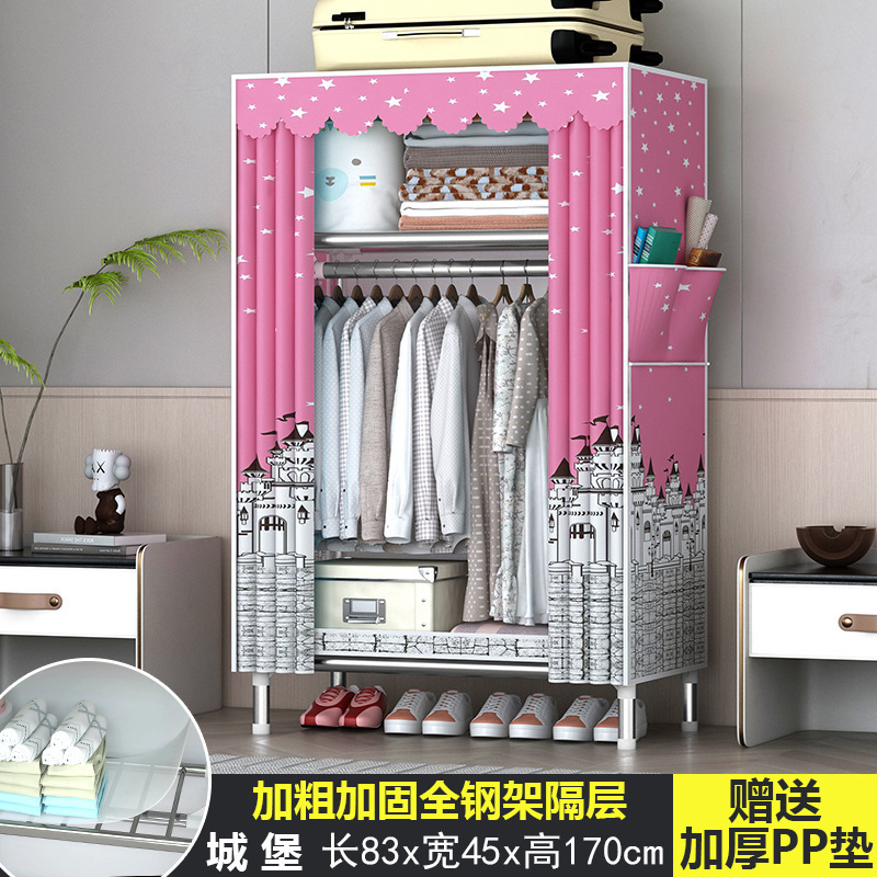 가정용 침실용 간단한 옷장, 튼튼하고 내구성이 뛰어난 임대 주택 조립식 천 옷장, 전체 강철 두꺼운 선반 보관 캐비닛