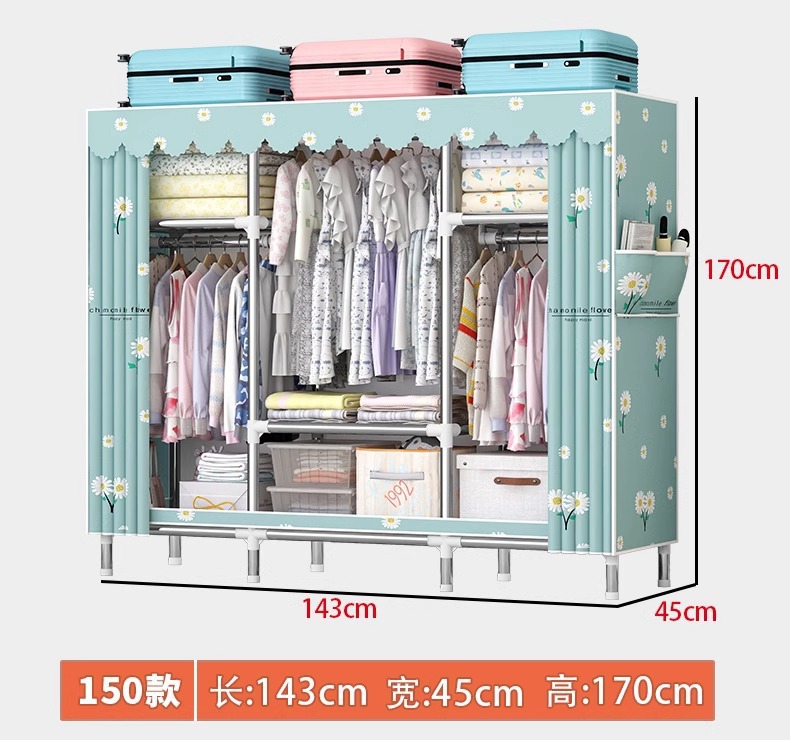 가정용 침실용 간단한 옷장, 튼튼하고 내구성이 뛰어난 임대 주택 조립식 천 옷장, 전체 강철 두꺼운 선반 보관 캐비닛스토어 가기