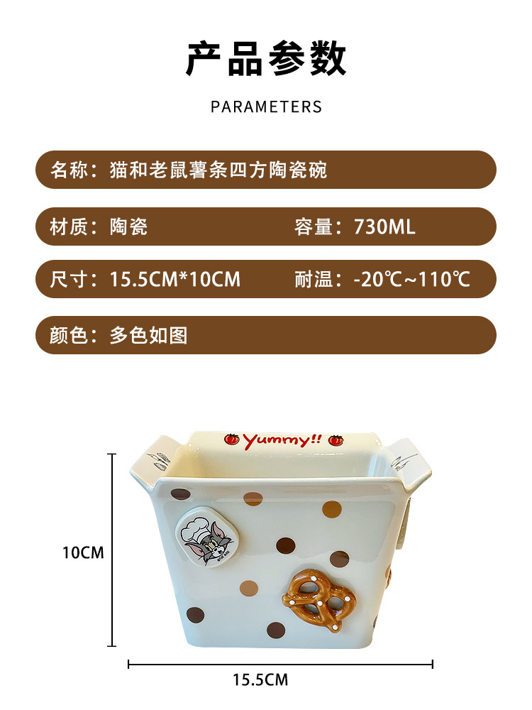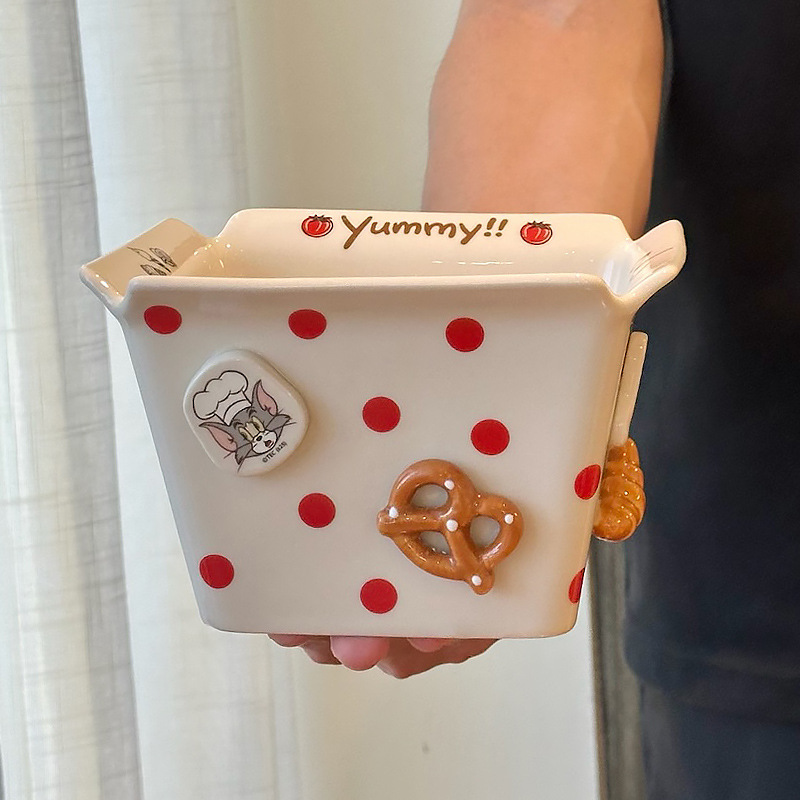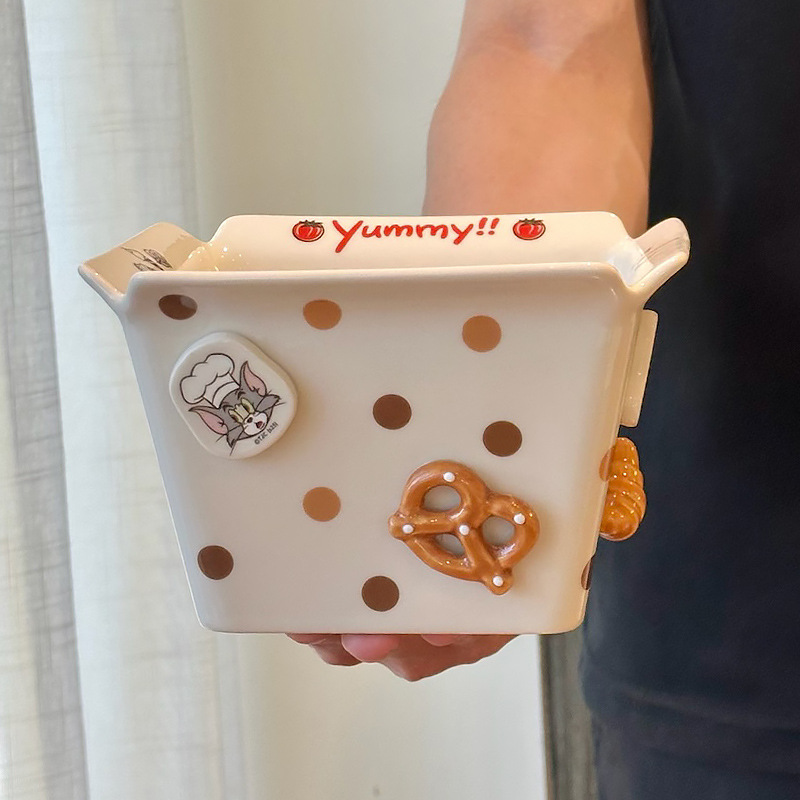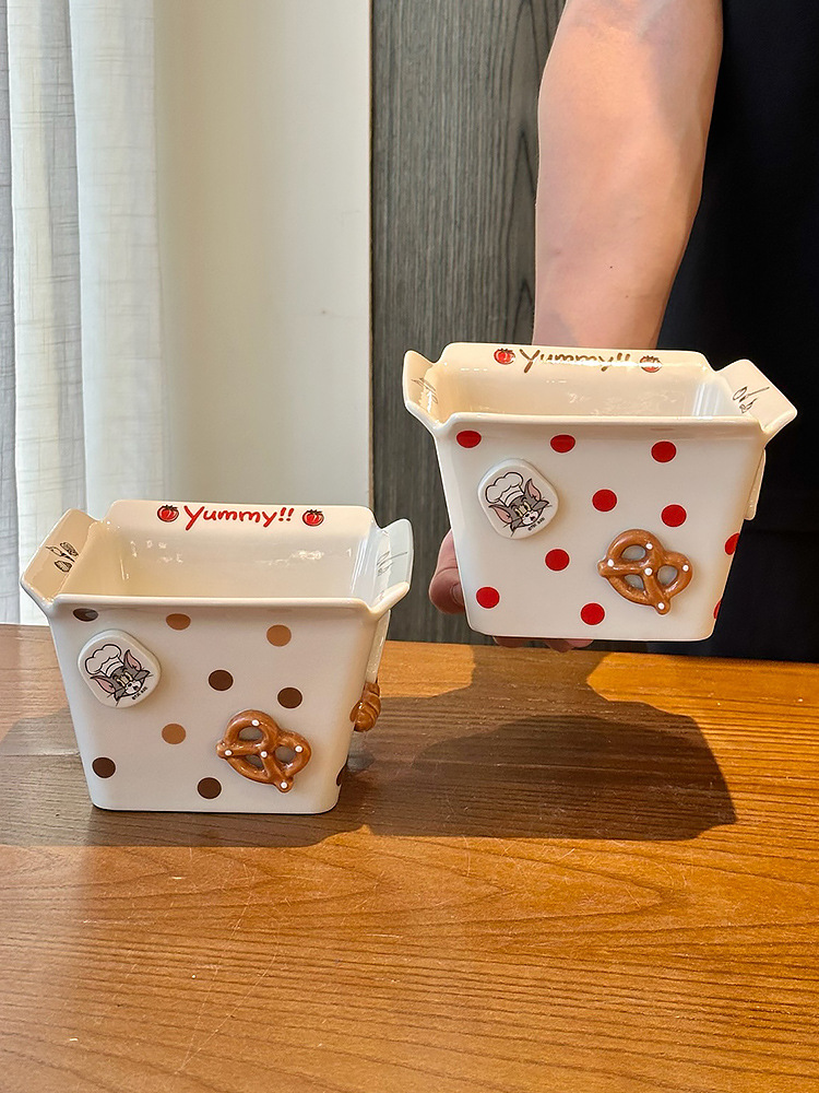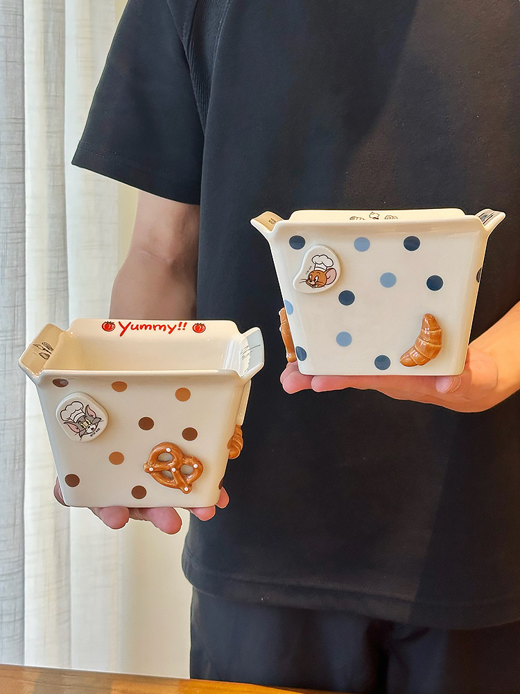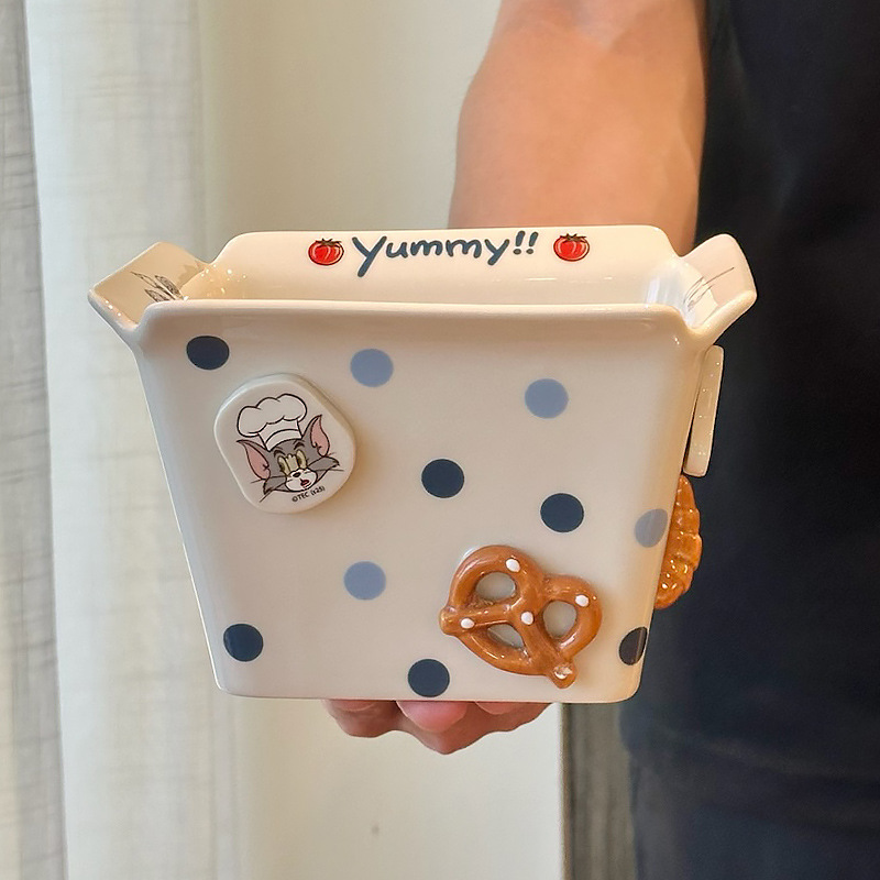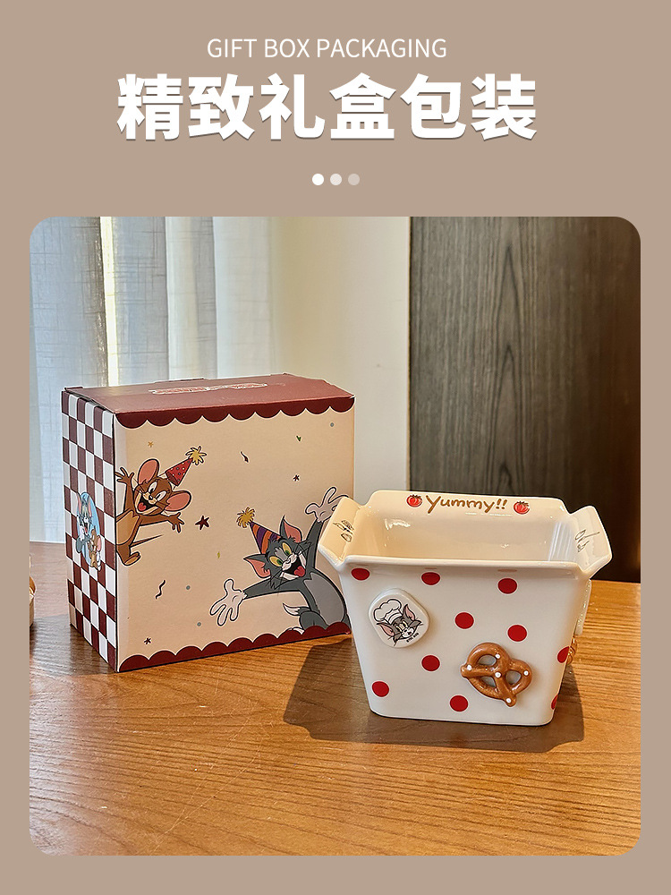 톰과 제리 주변 세라믹 감자 튀김 그릇 커플 팝콘 과일 샐러드 그릇 새로운 고가치 생일 선물스토어 가기