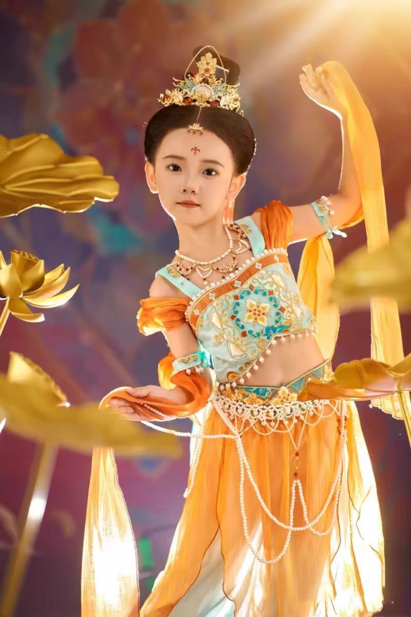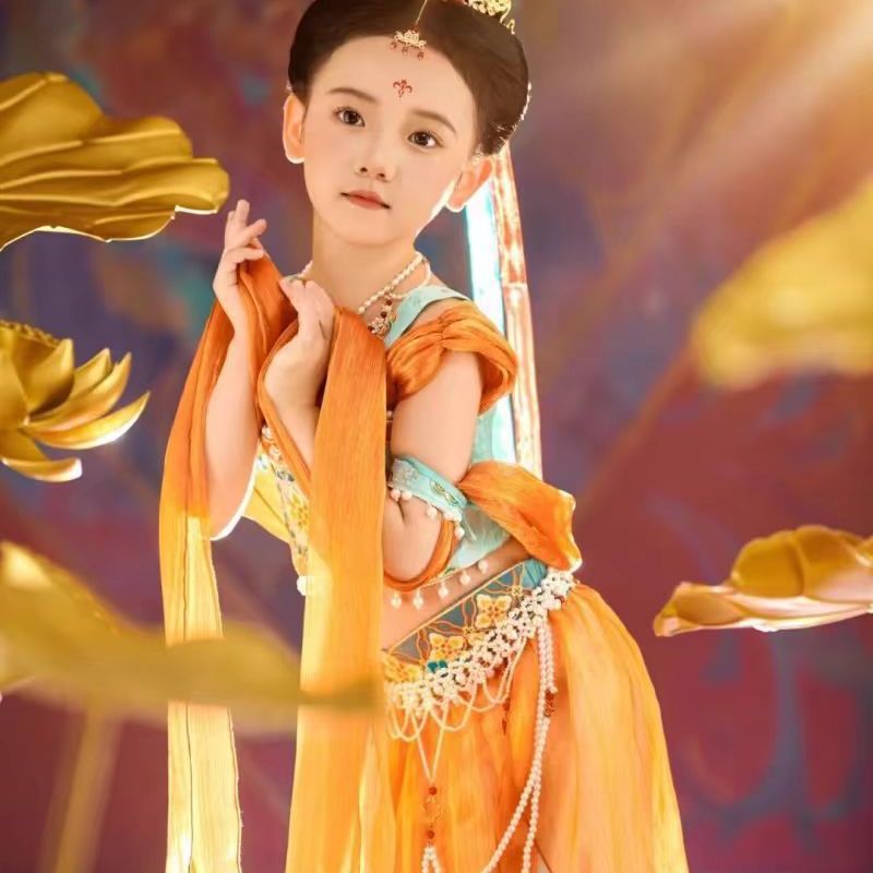 둔황 Feitian 댄스 공연 의상 어린이 Hanfu 고대 소녀 클래식 리바운드 Pipa 이국적인 스타일 공연 의상스토어 가기