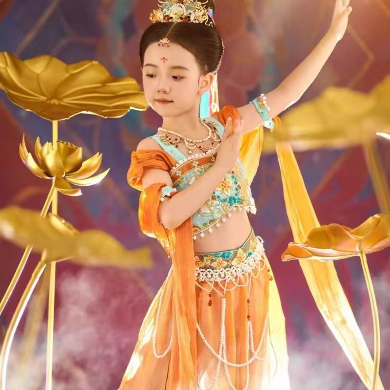 둔황 Feitian 댄스 공연 의상 어린이 Hanfu 고대 소녀 클래식 리바운드 Pipa 이국적인 스타일 공연 의상