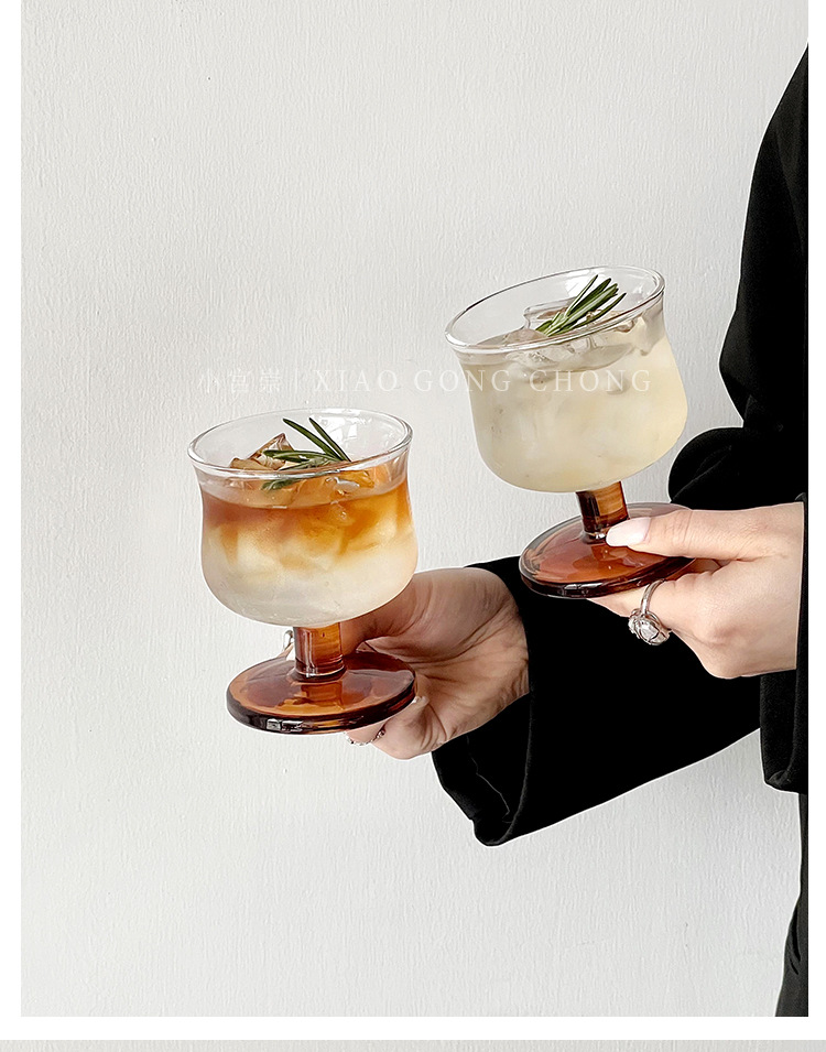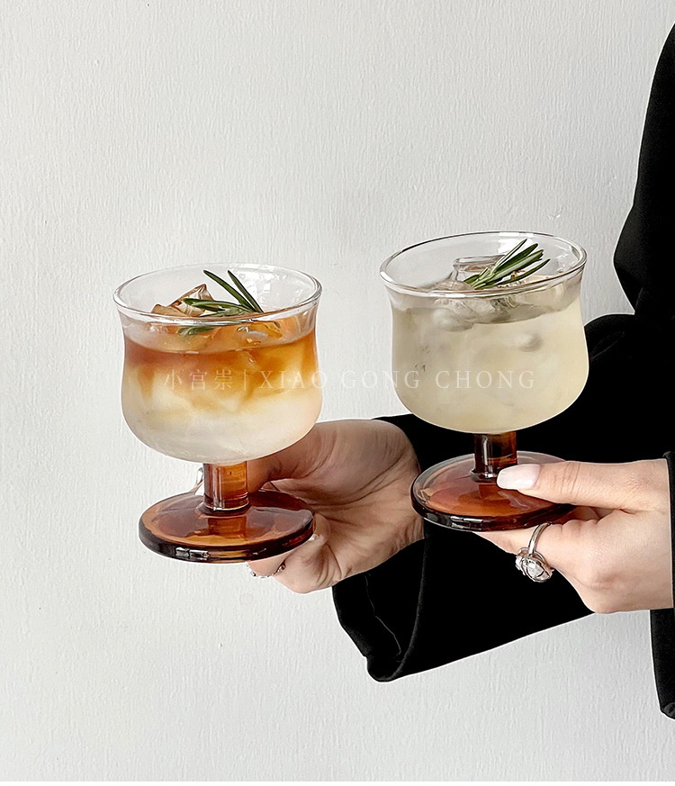 小众复古矮脚收腰玻璃杯ins风美式咖啡杯特调饮品杯冷饮杯果汁杯스토어 가기