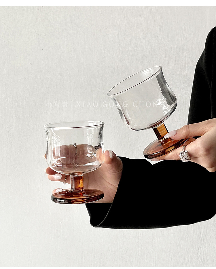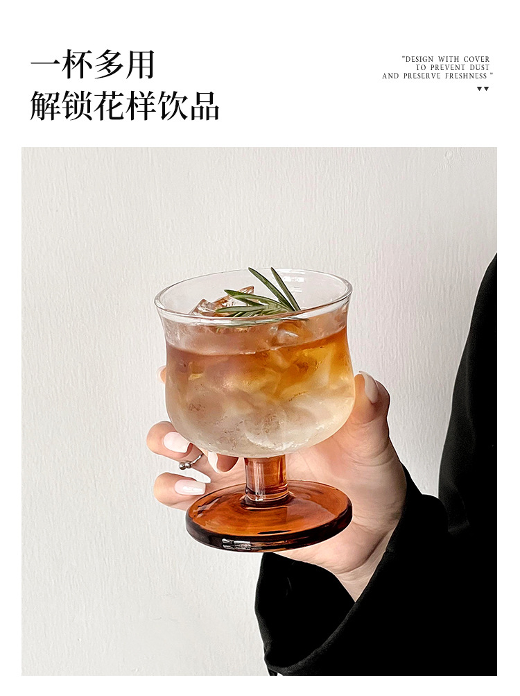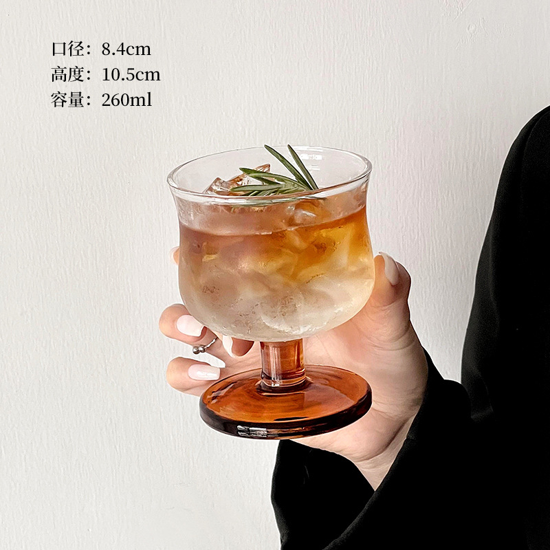 小众复古矮脚收腰玻璃杯ins风美式咖啡杯特调饮品杯冷饮杯果汁杯