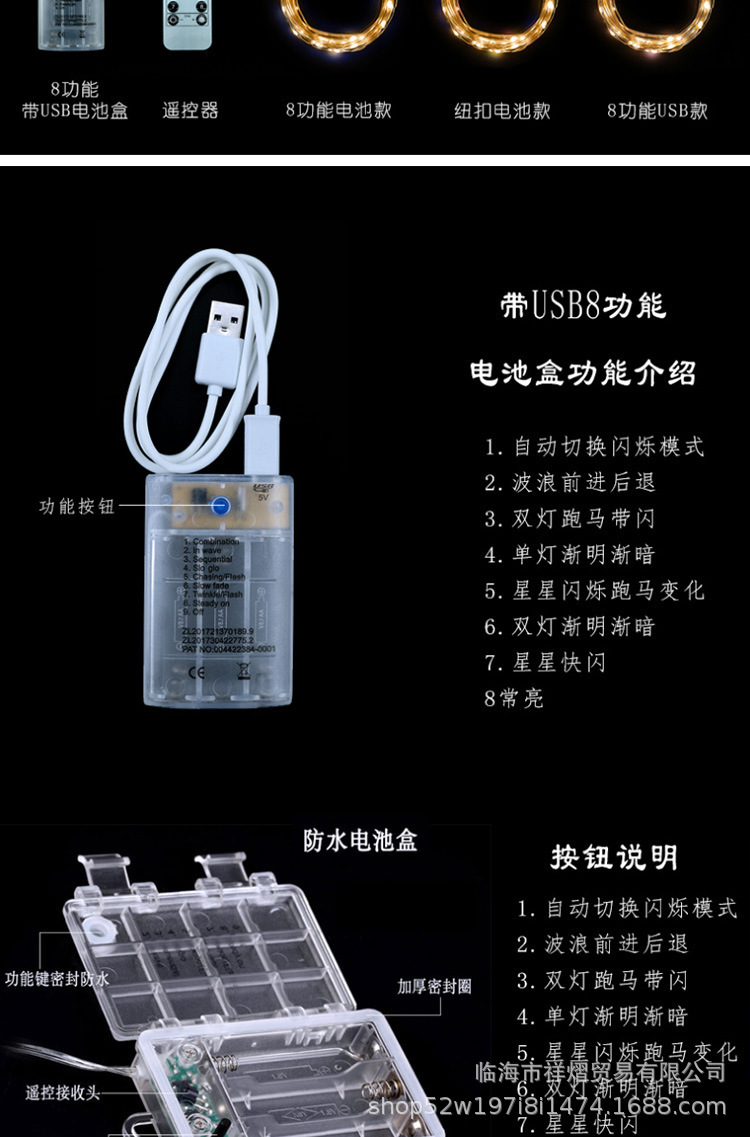 Led 배터리 상자 문자열 조명 휴일 장식 캠핑 스톨 작은 조명 야외 방수 깜박이는 벌거 벌주 도매스토어 가기
