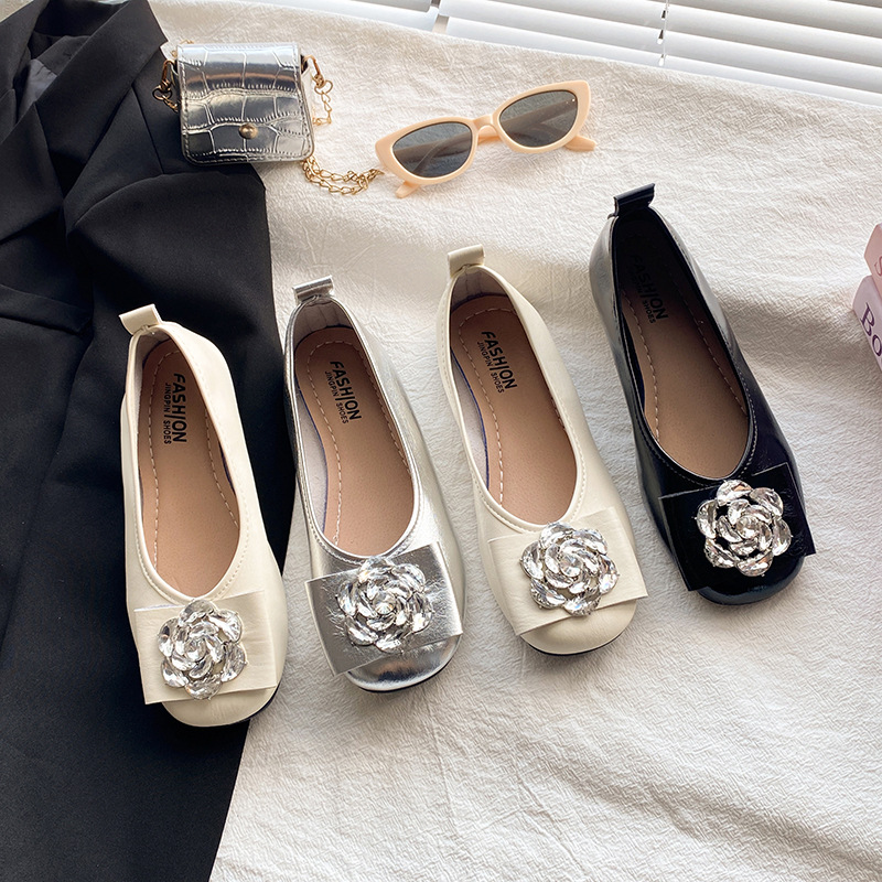 여성을위한 스커트가있는 프렌치 플랫 슈즈 2025 새로운 여름 부드러운 밑창 피곤하지 않은 신발 라인스톤 플라워 비니 슈즈스토어 가기