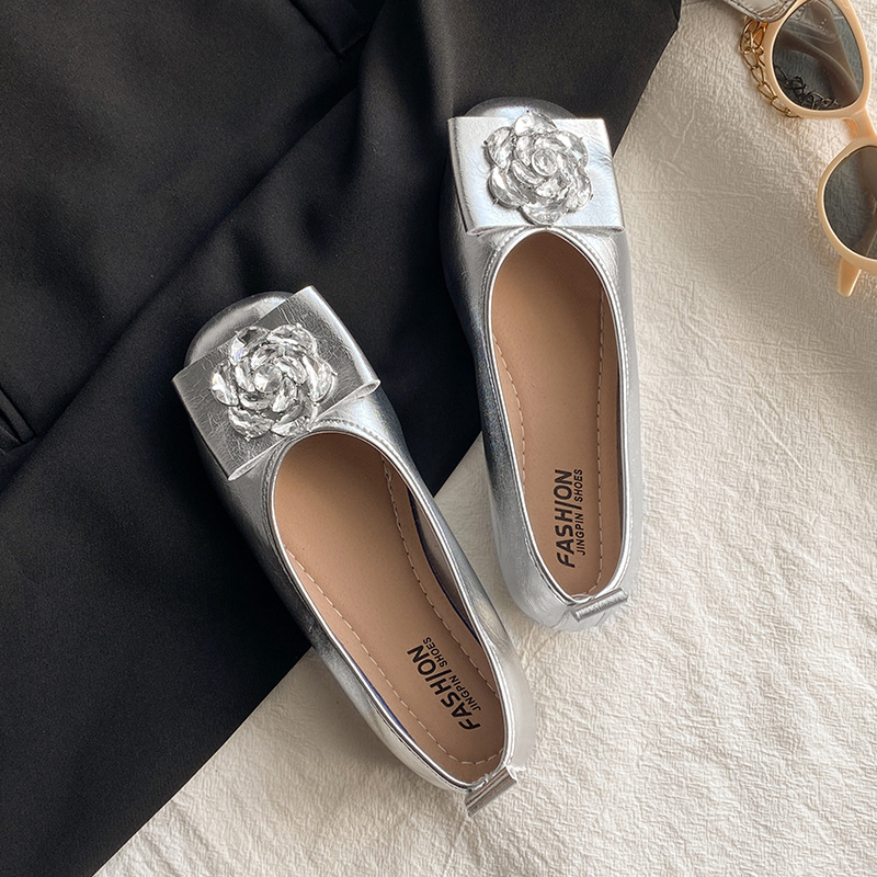 여성을위한 스커트가있는 프렌치 플랫 슈즈 2025 새로운 여름 부드러운 밑창 피곤하지 않은 신발 라인스톤 플라워 비니 슈즈