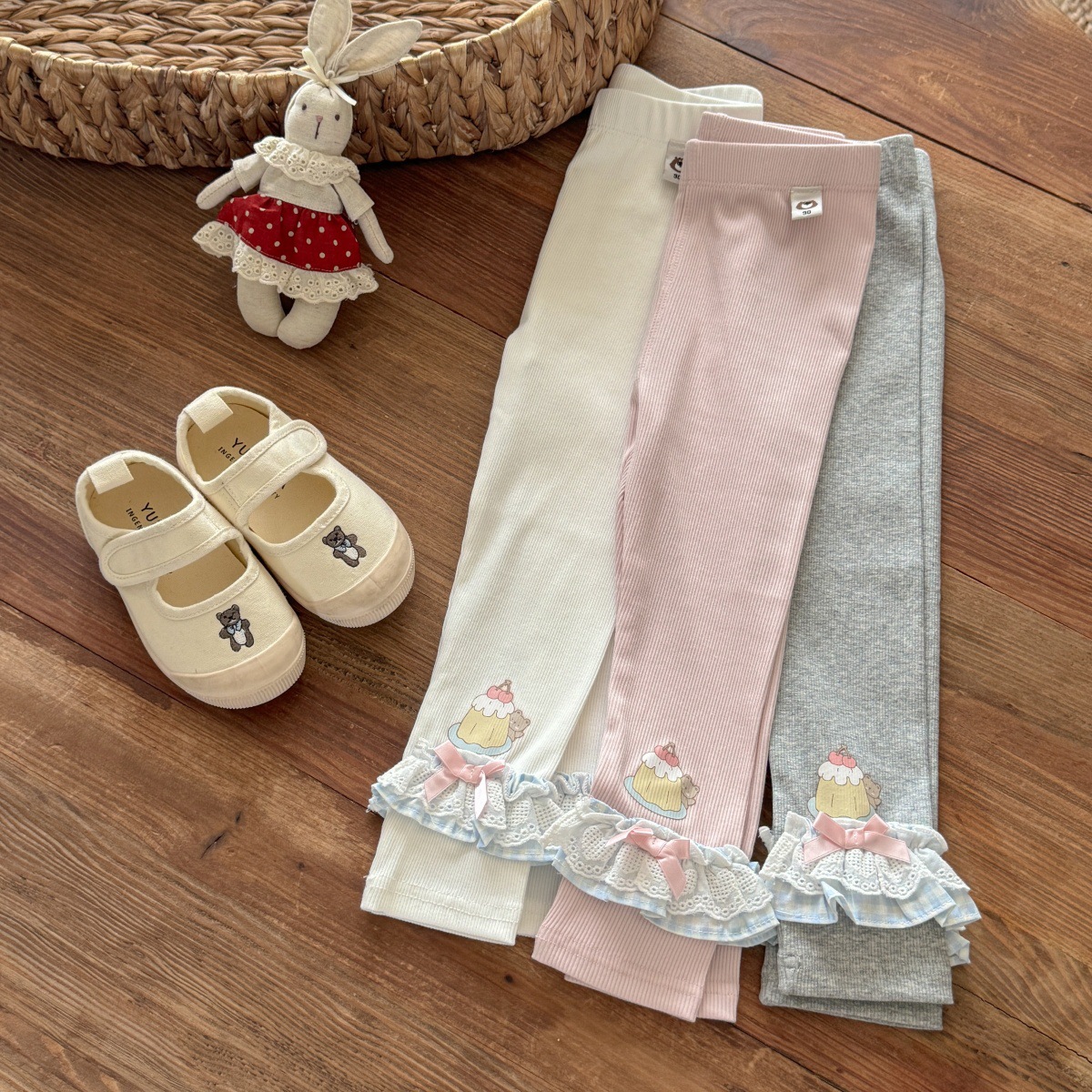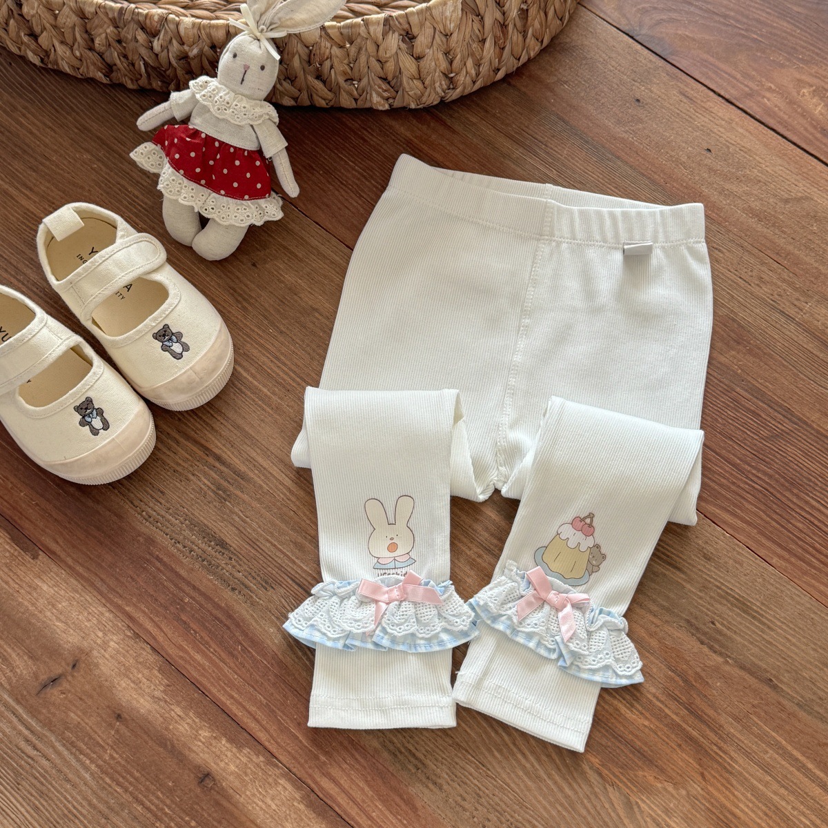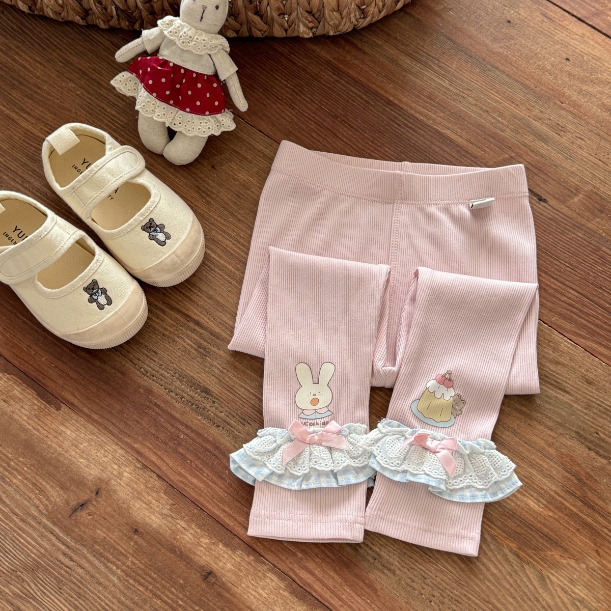 세븐세븐 여아용 세련된 봄가을 스타일 한국판 아동용 레이스 레깅스 여아용 신축성 있는 슬림핏 팬츠