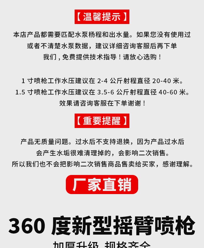 • 1寸铜摇臂喷枪+2米支架*三通. 接1.2/1.5寸软管
